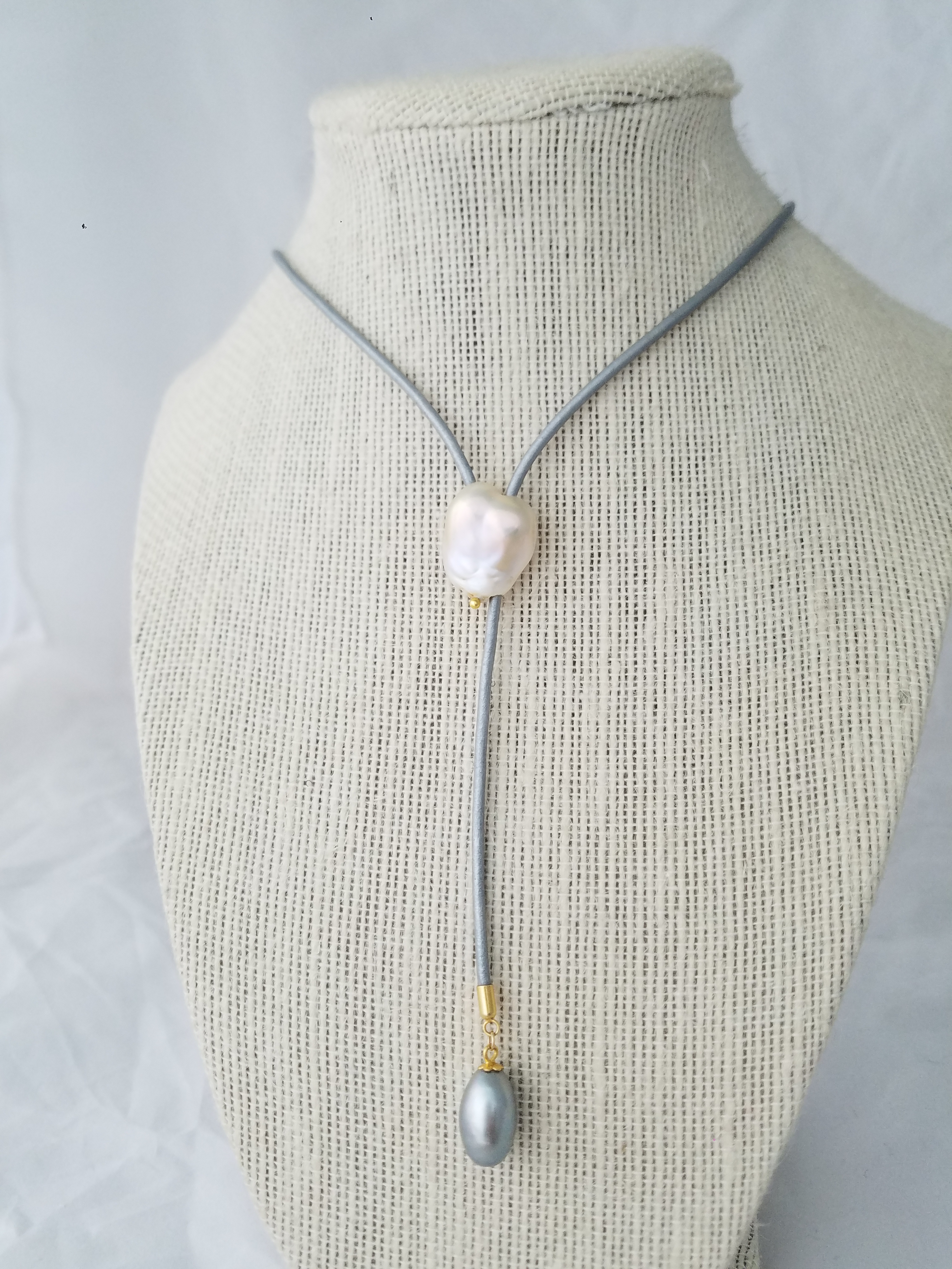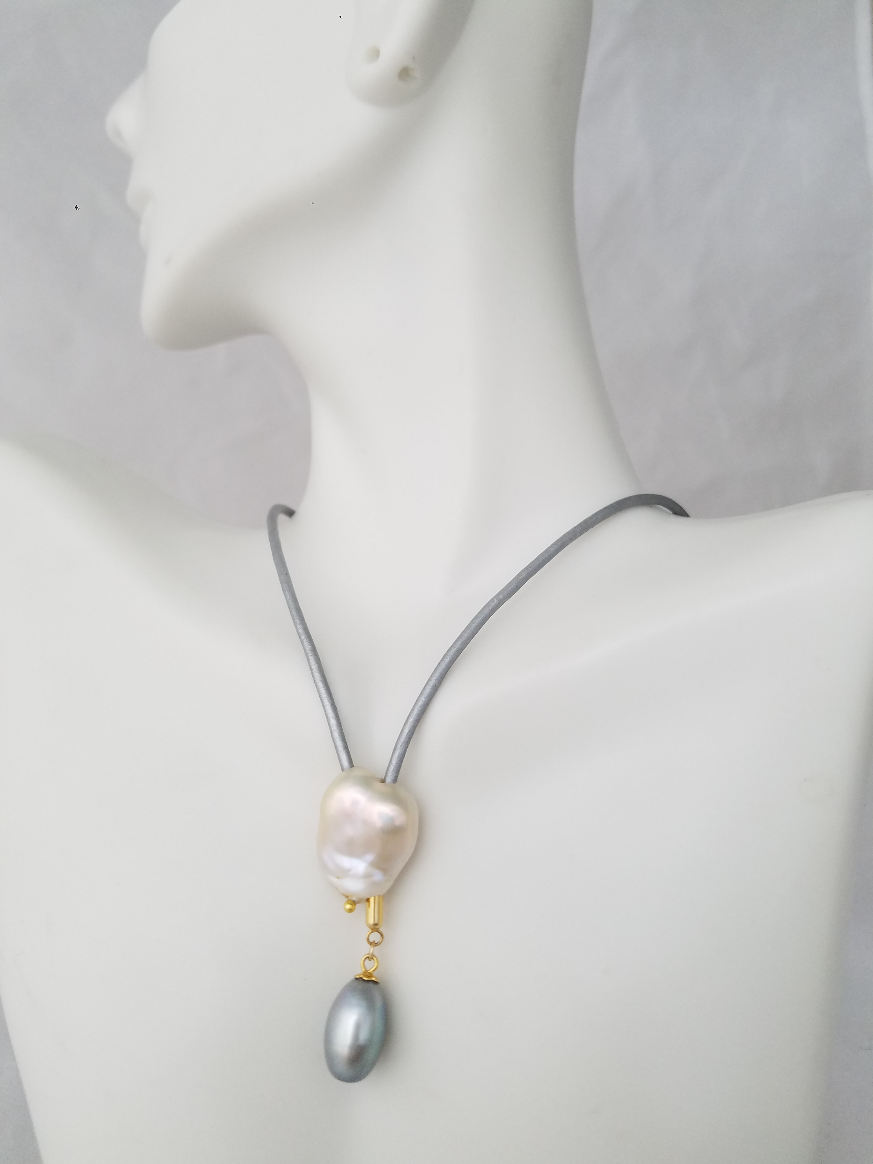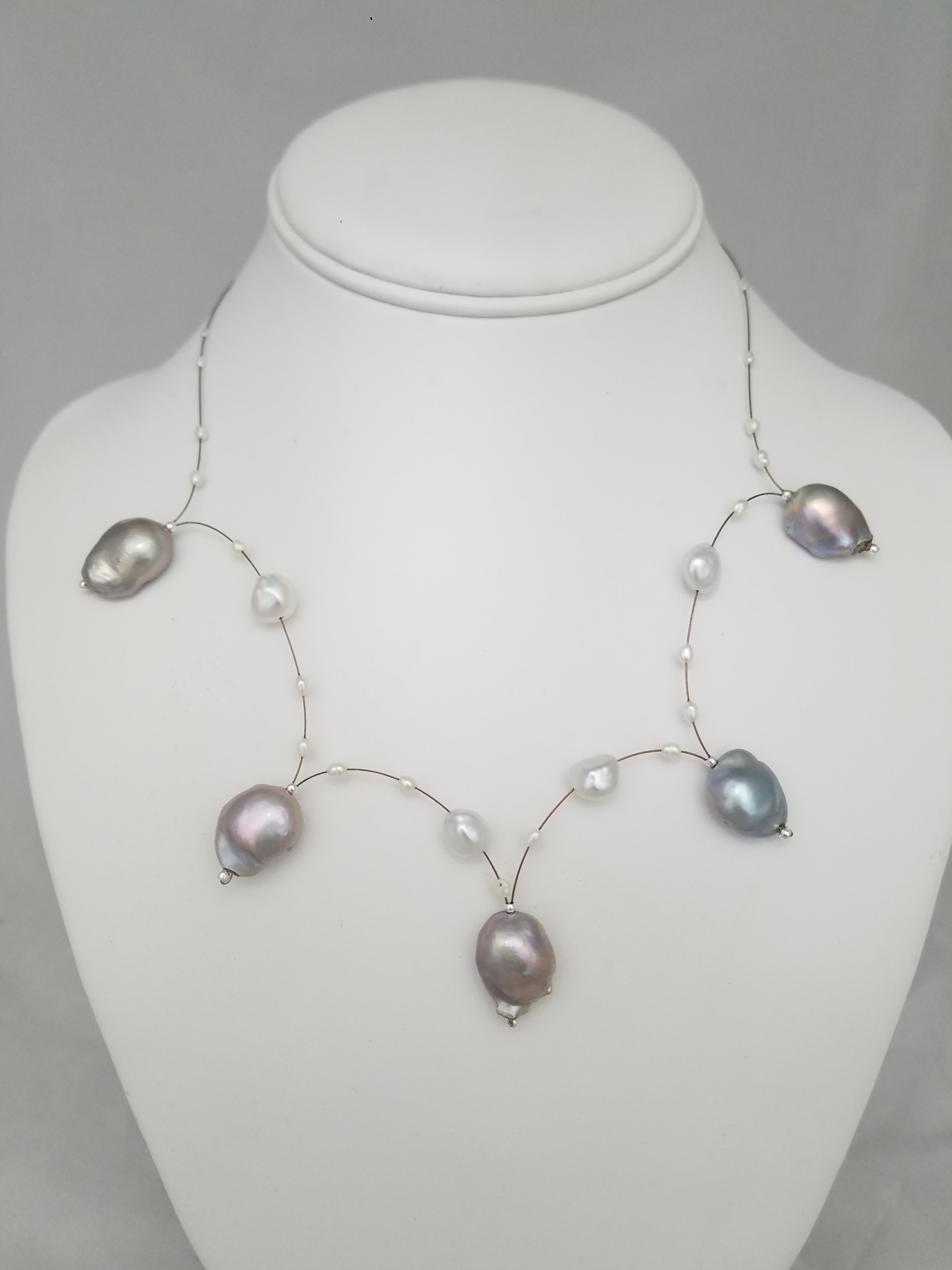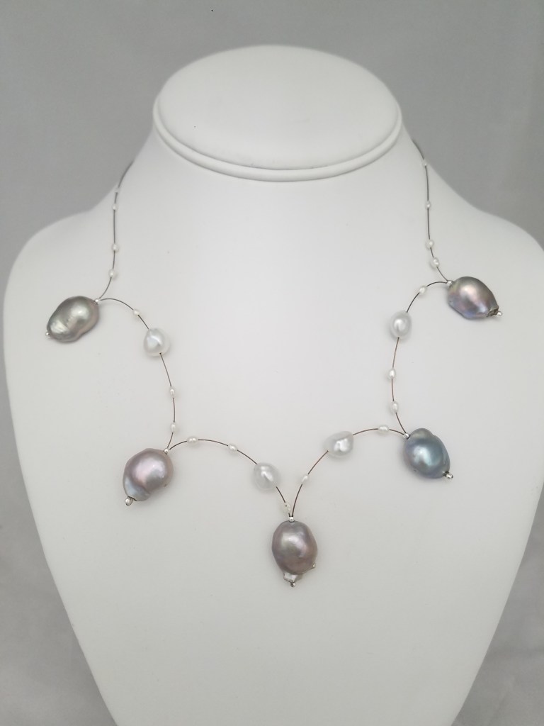 Grey and white pearl bouncy necklace