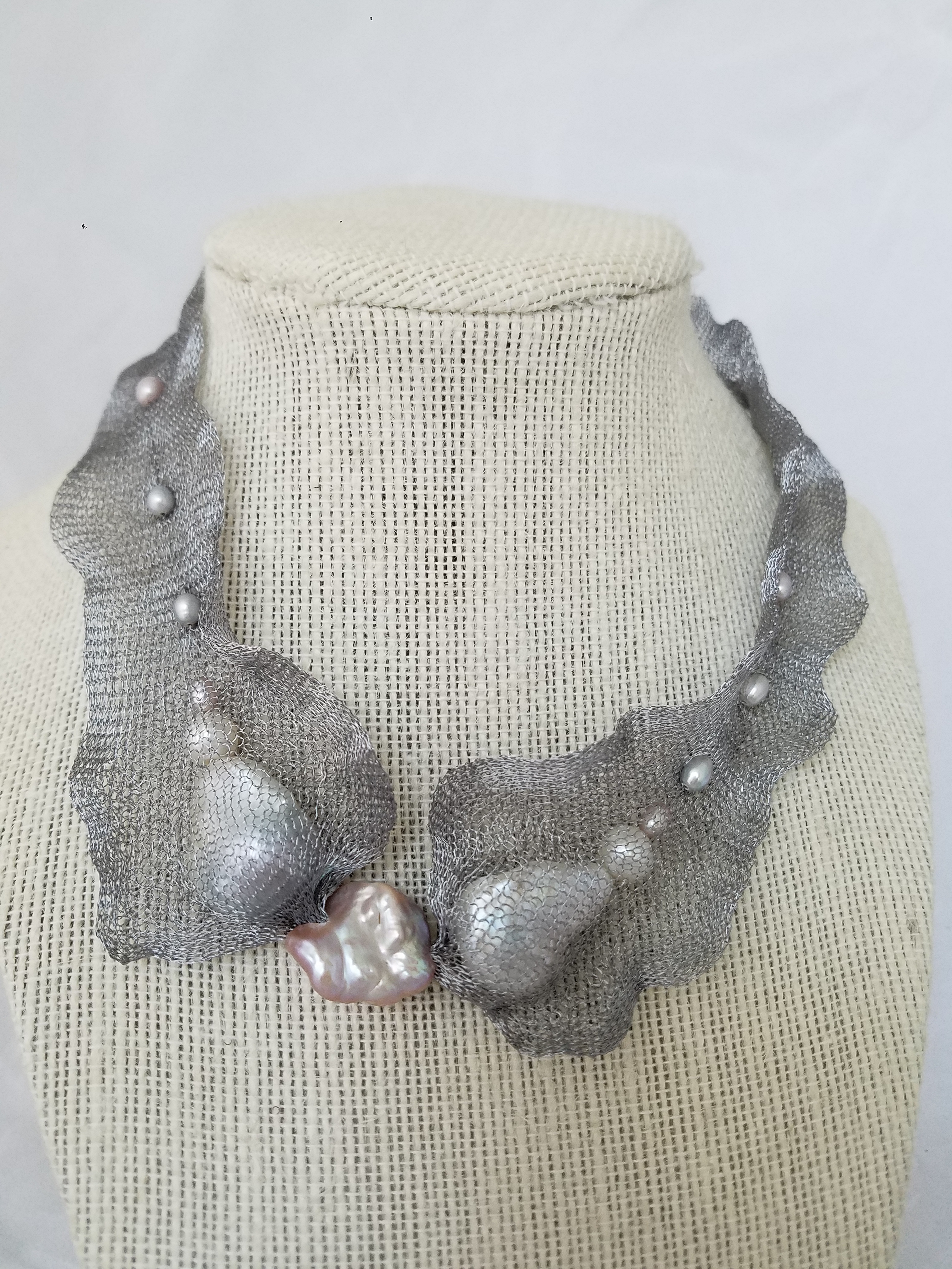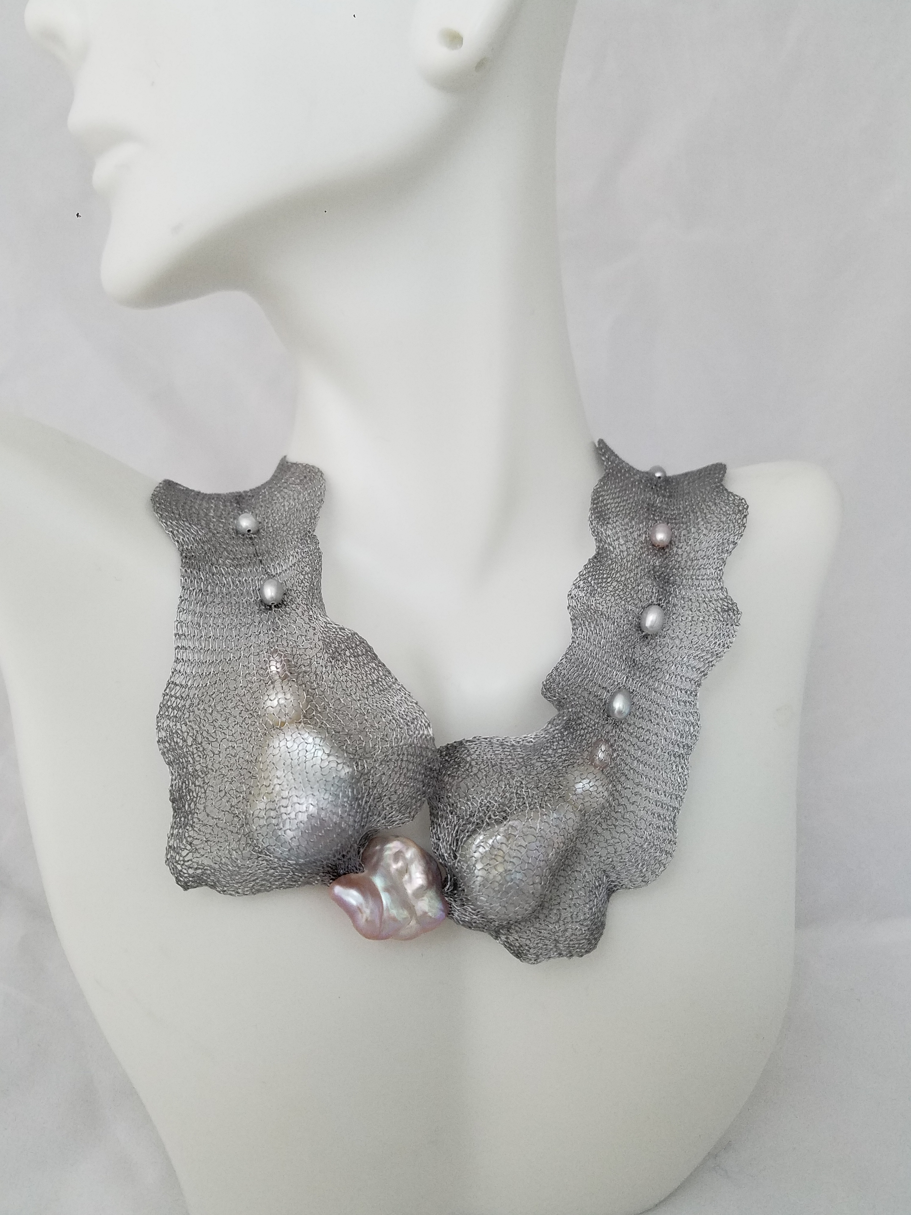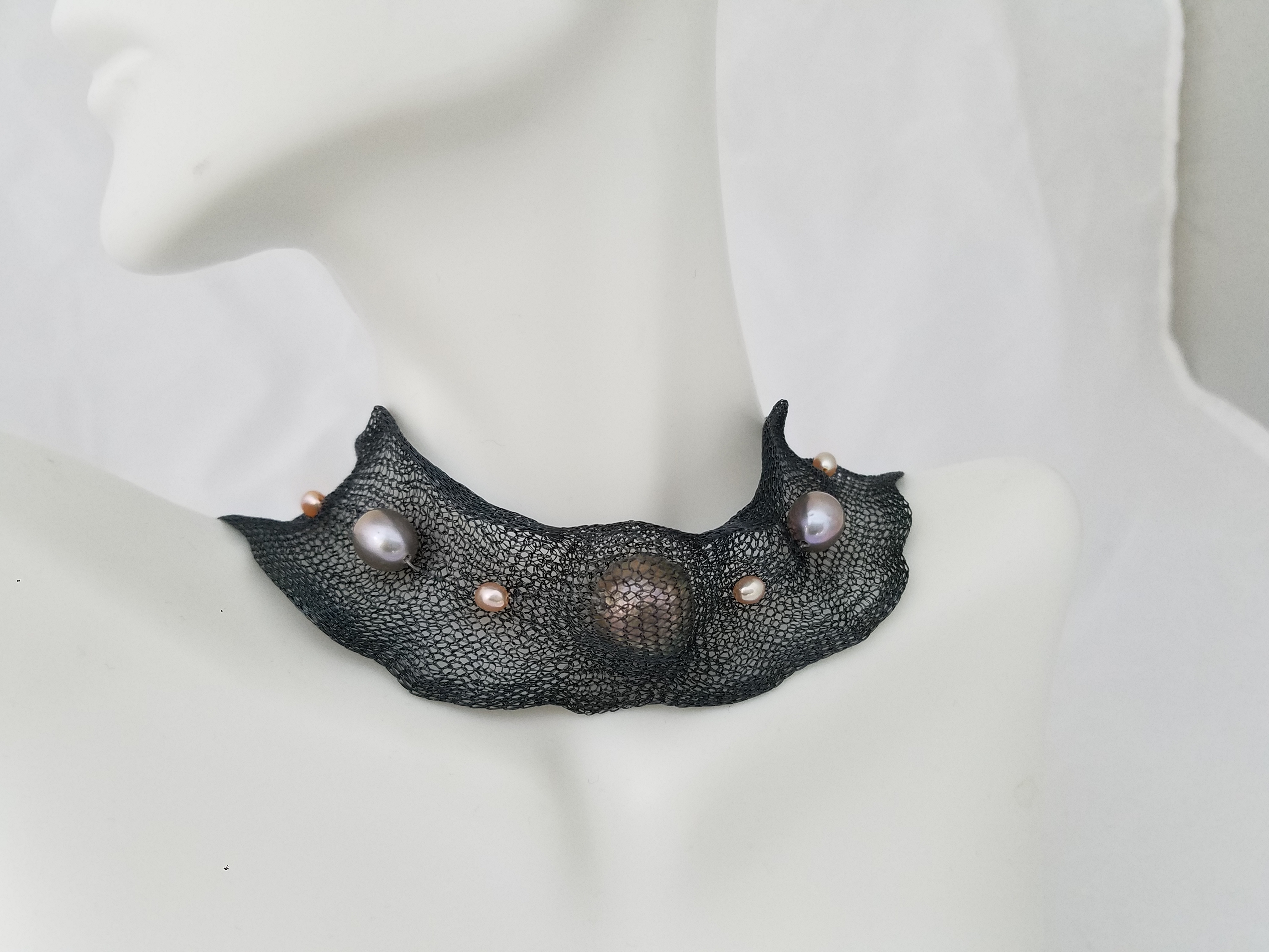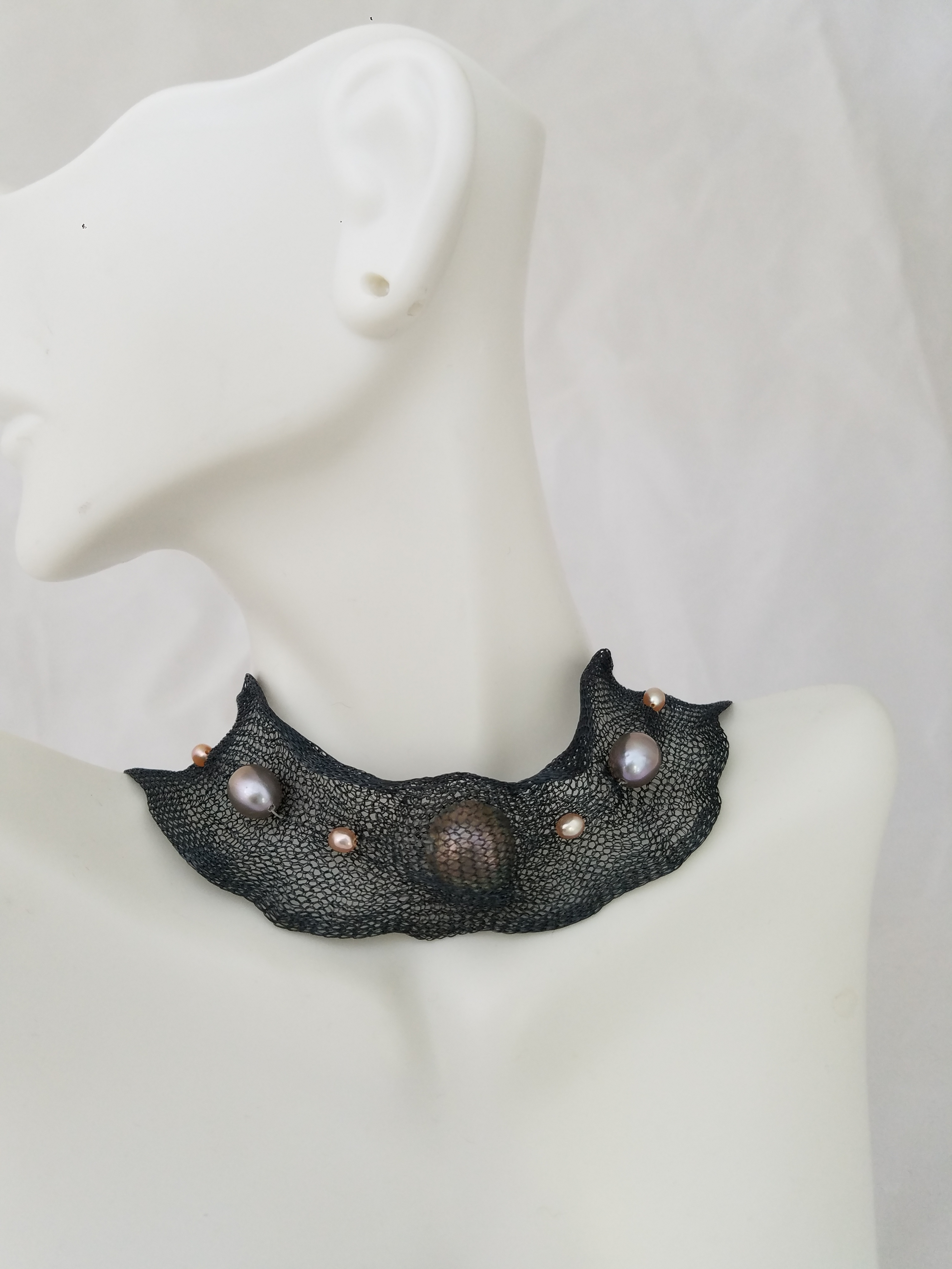 Titanium mesh and pearls necklace