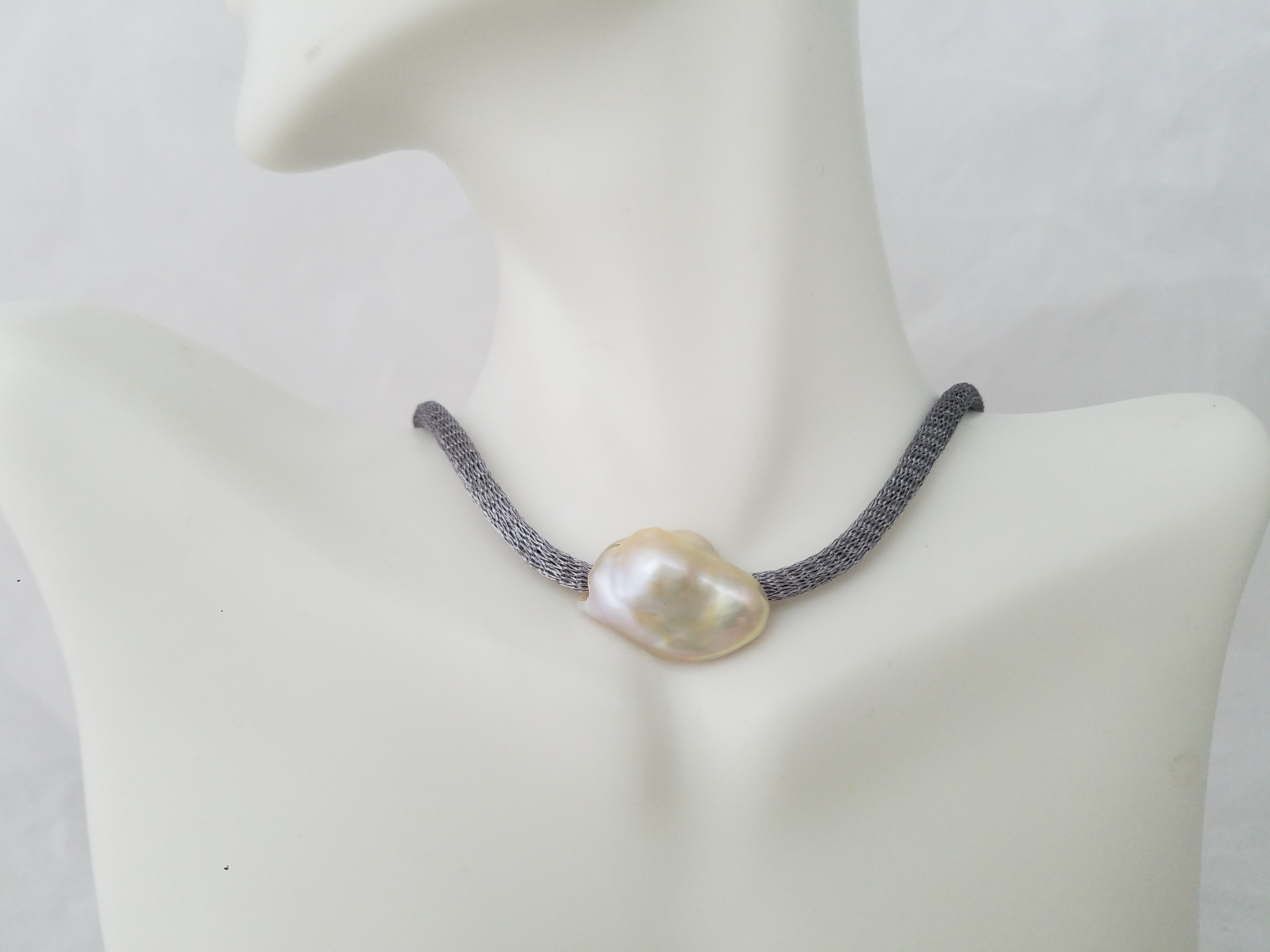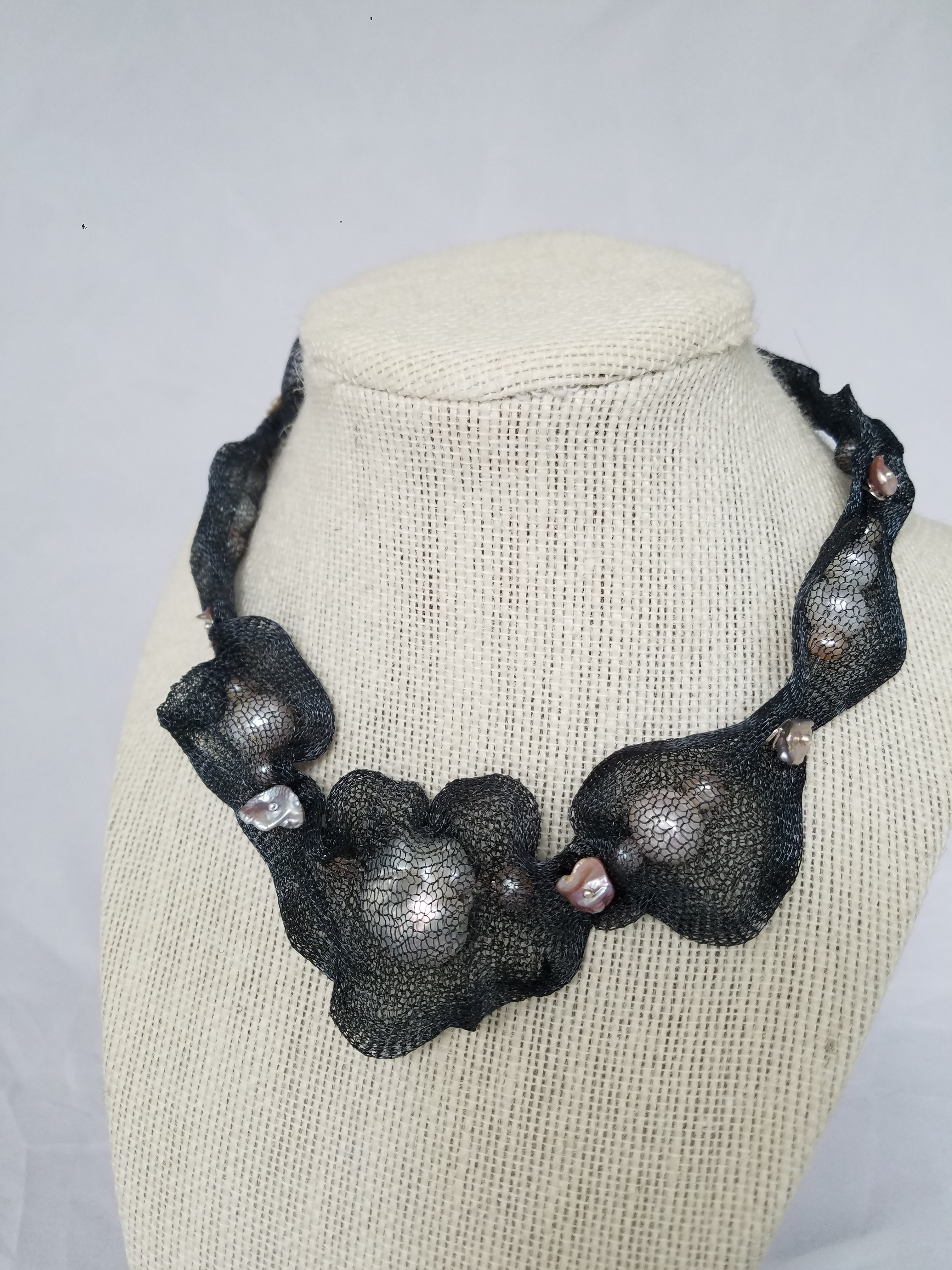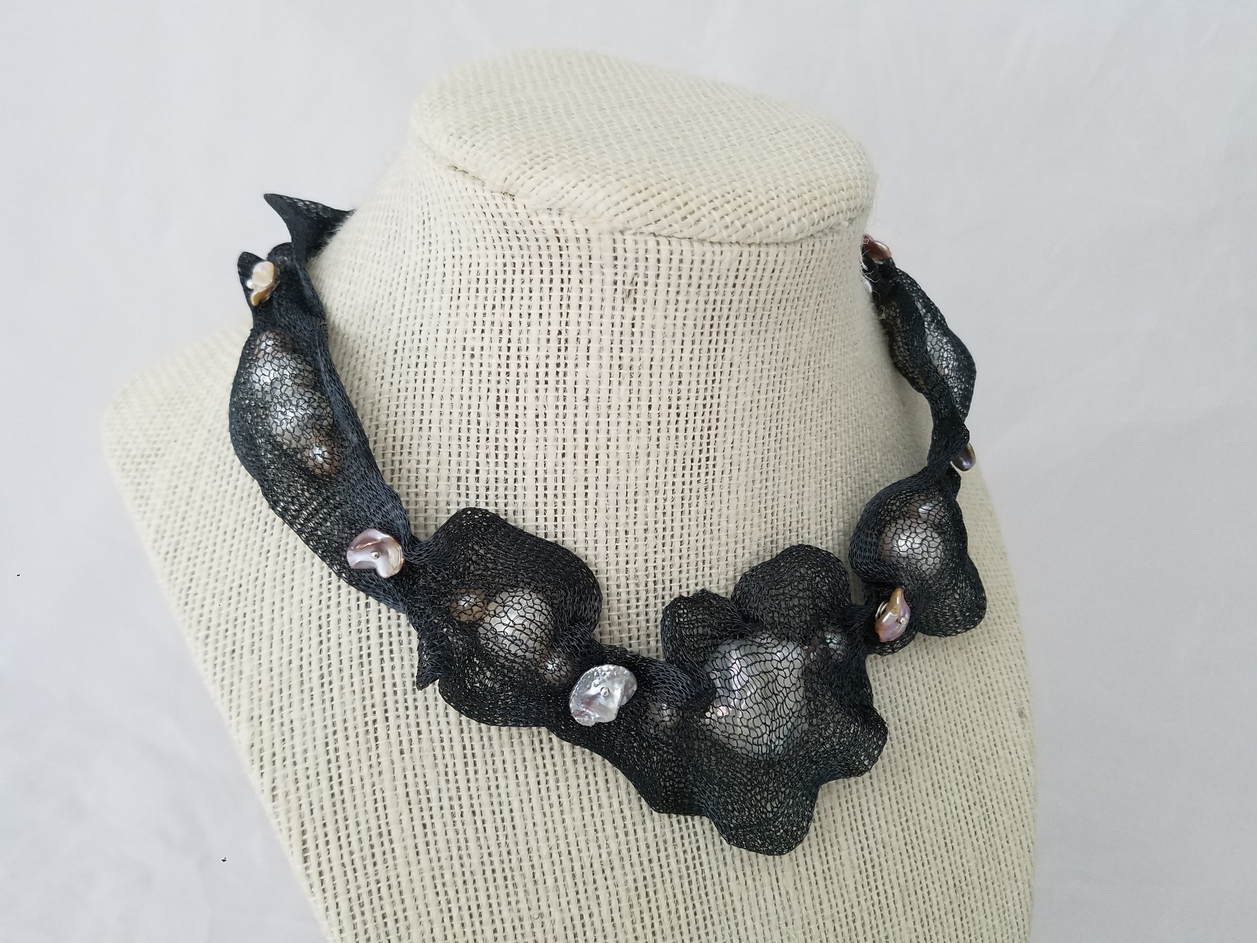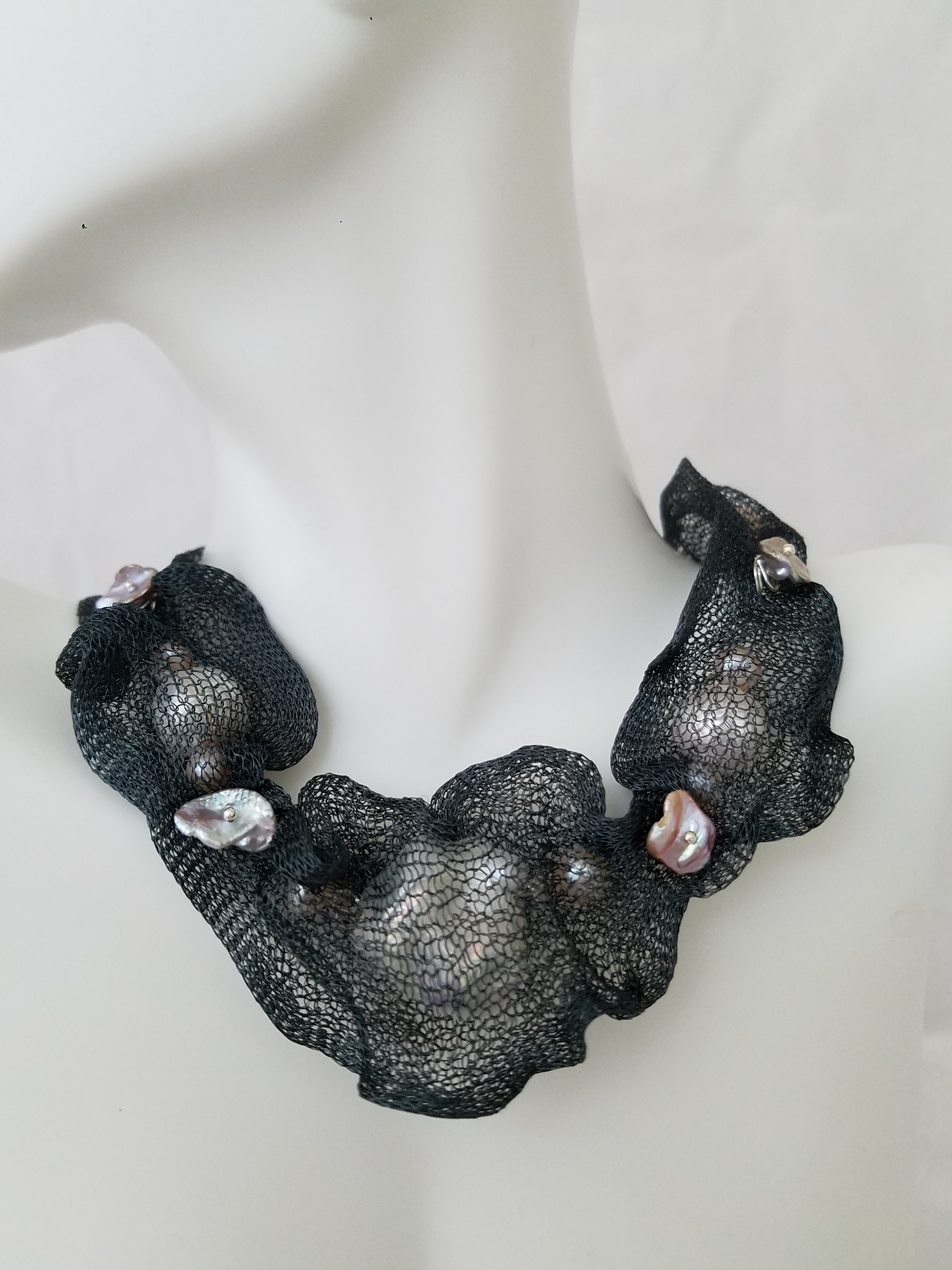 Titanium mesh and pearls necklace