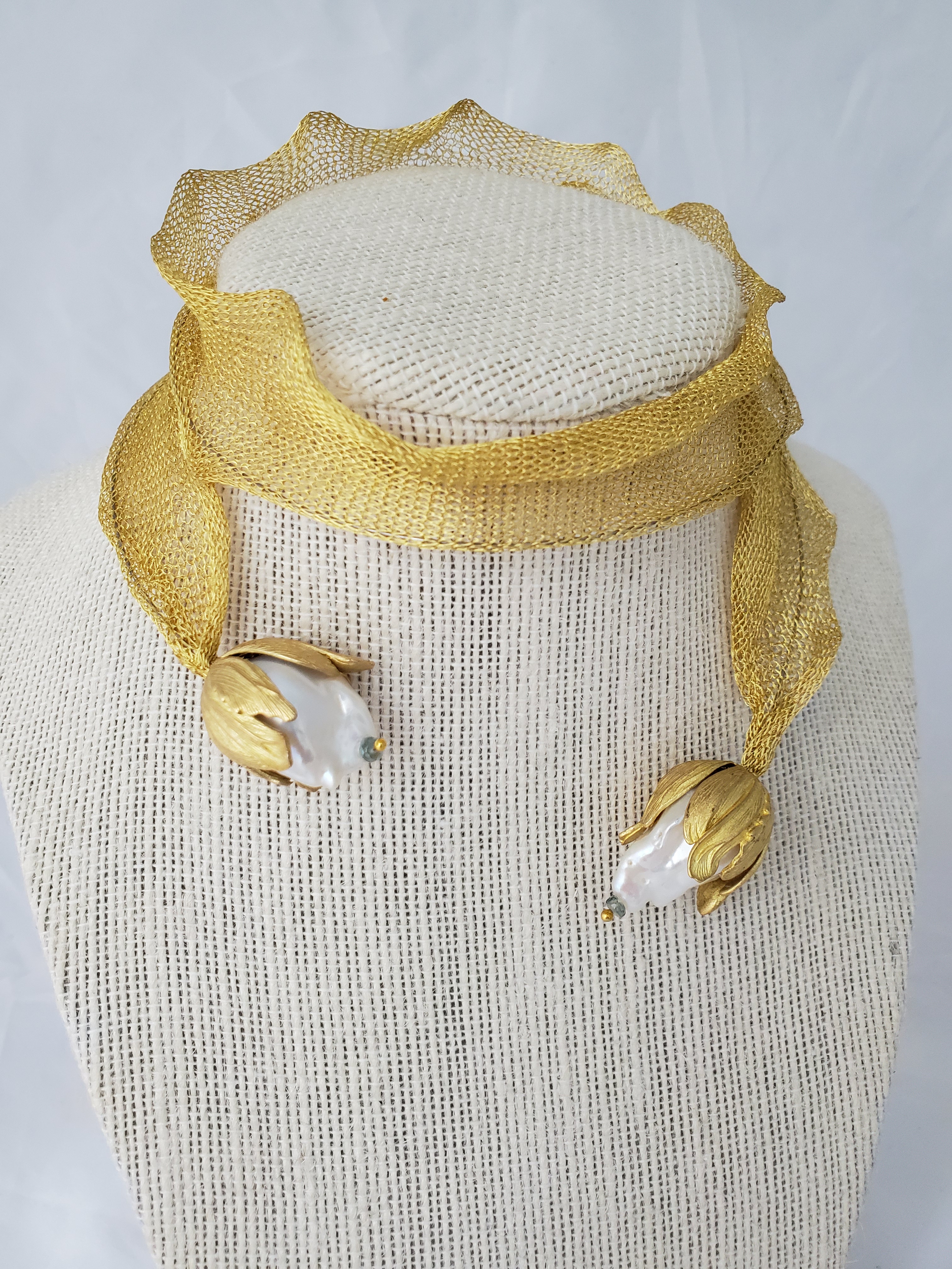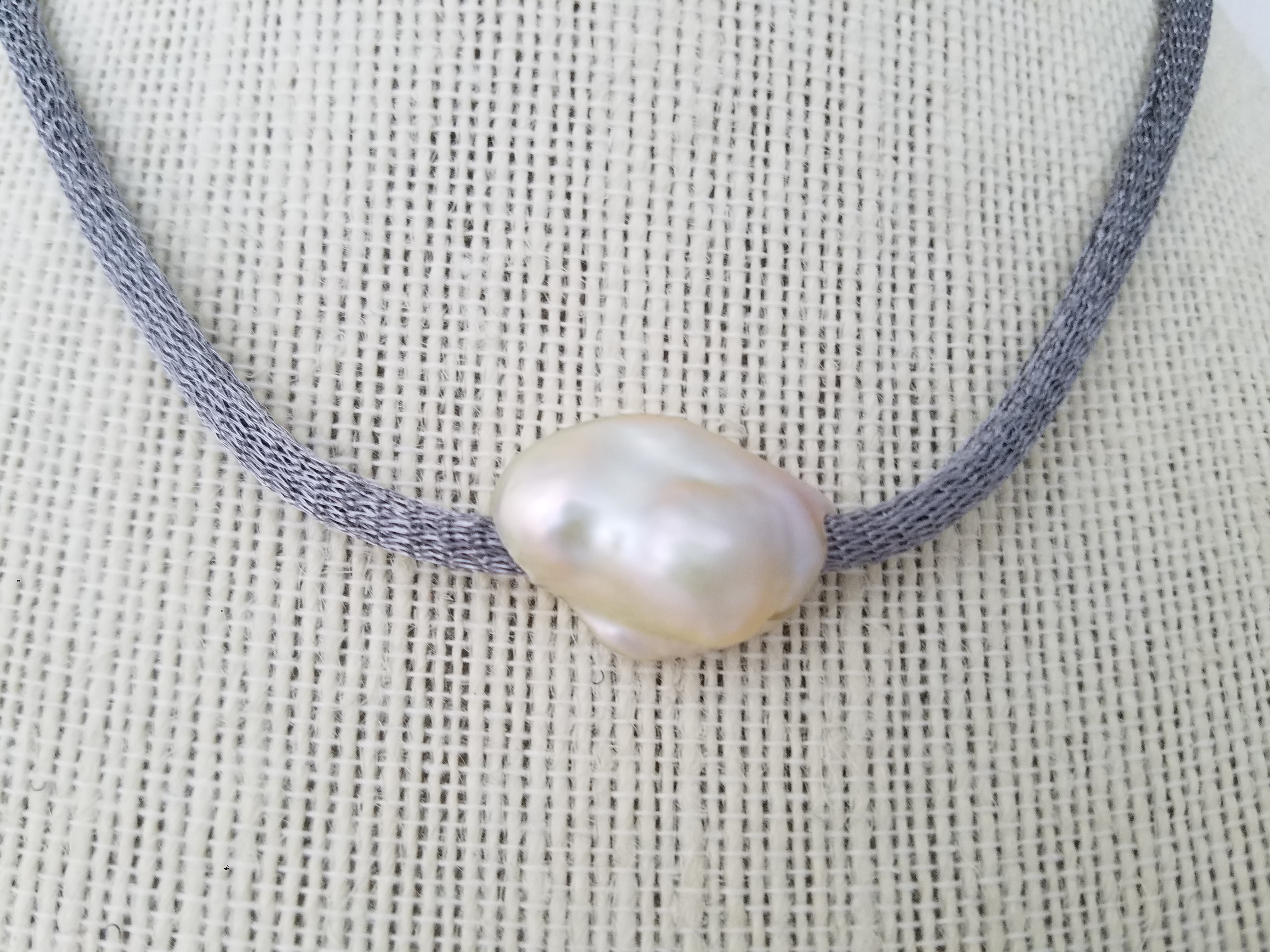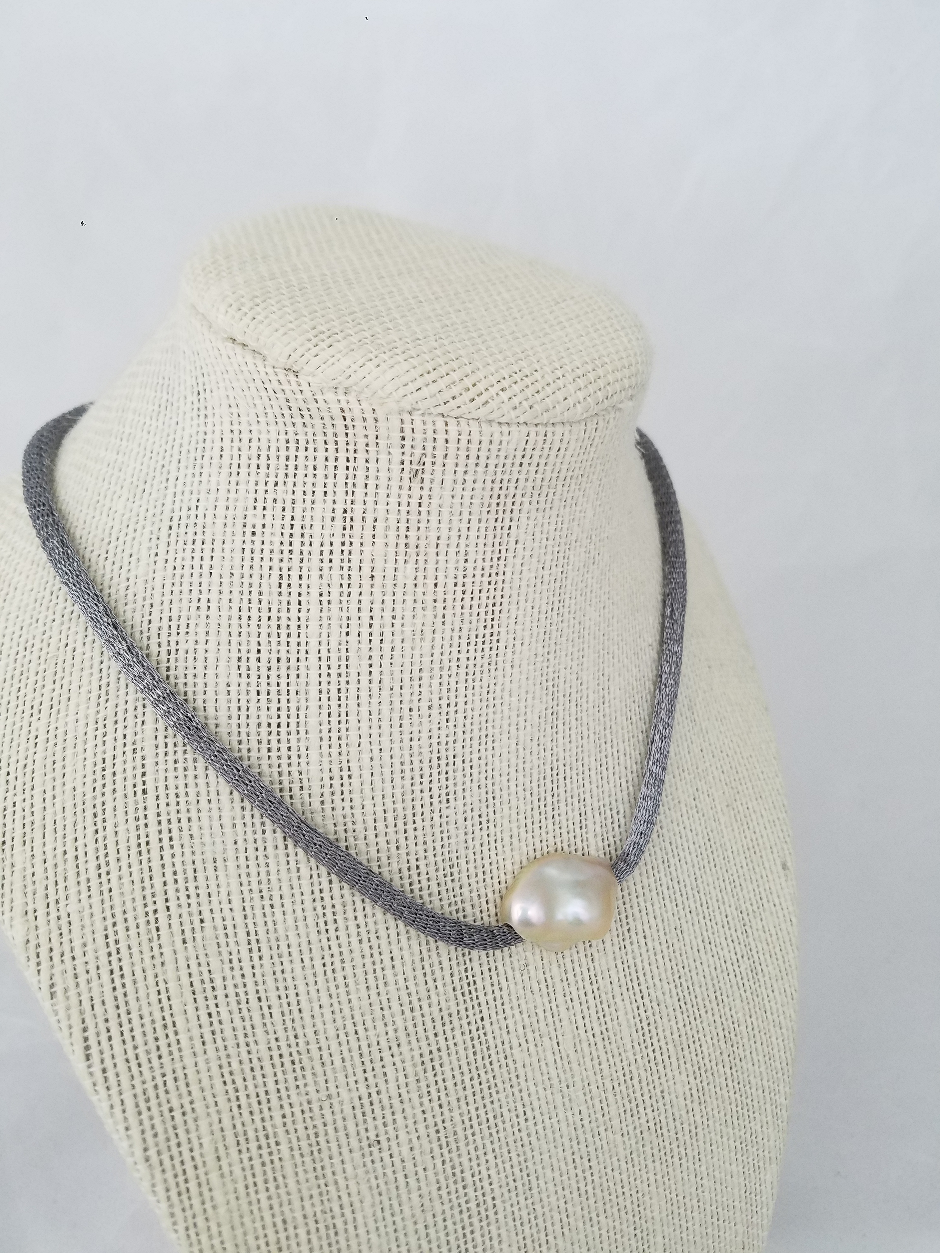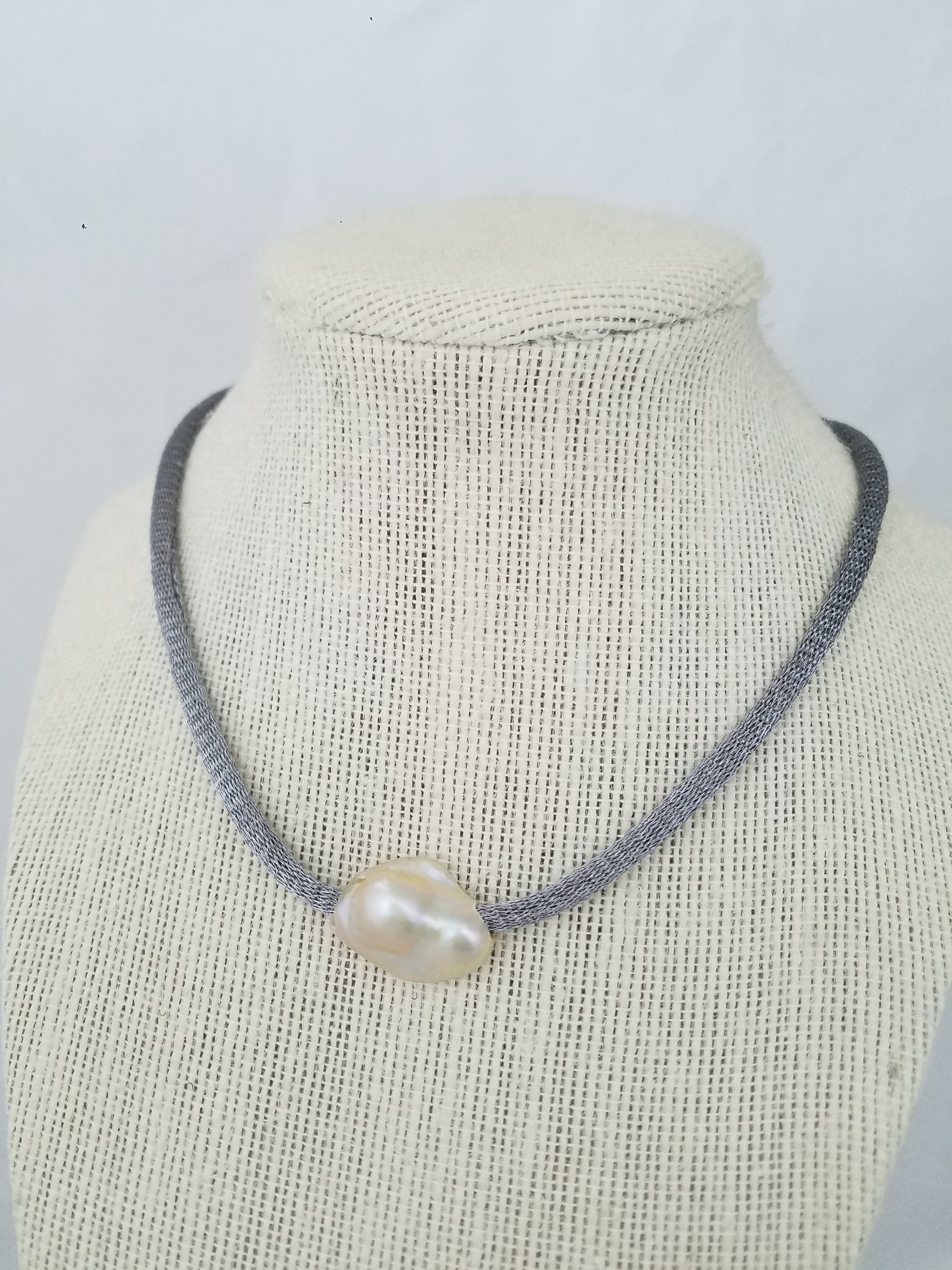 Titanium mesh and pearls necklace