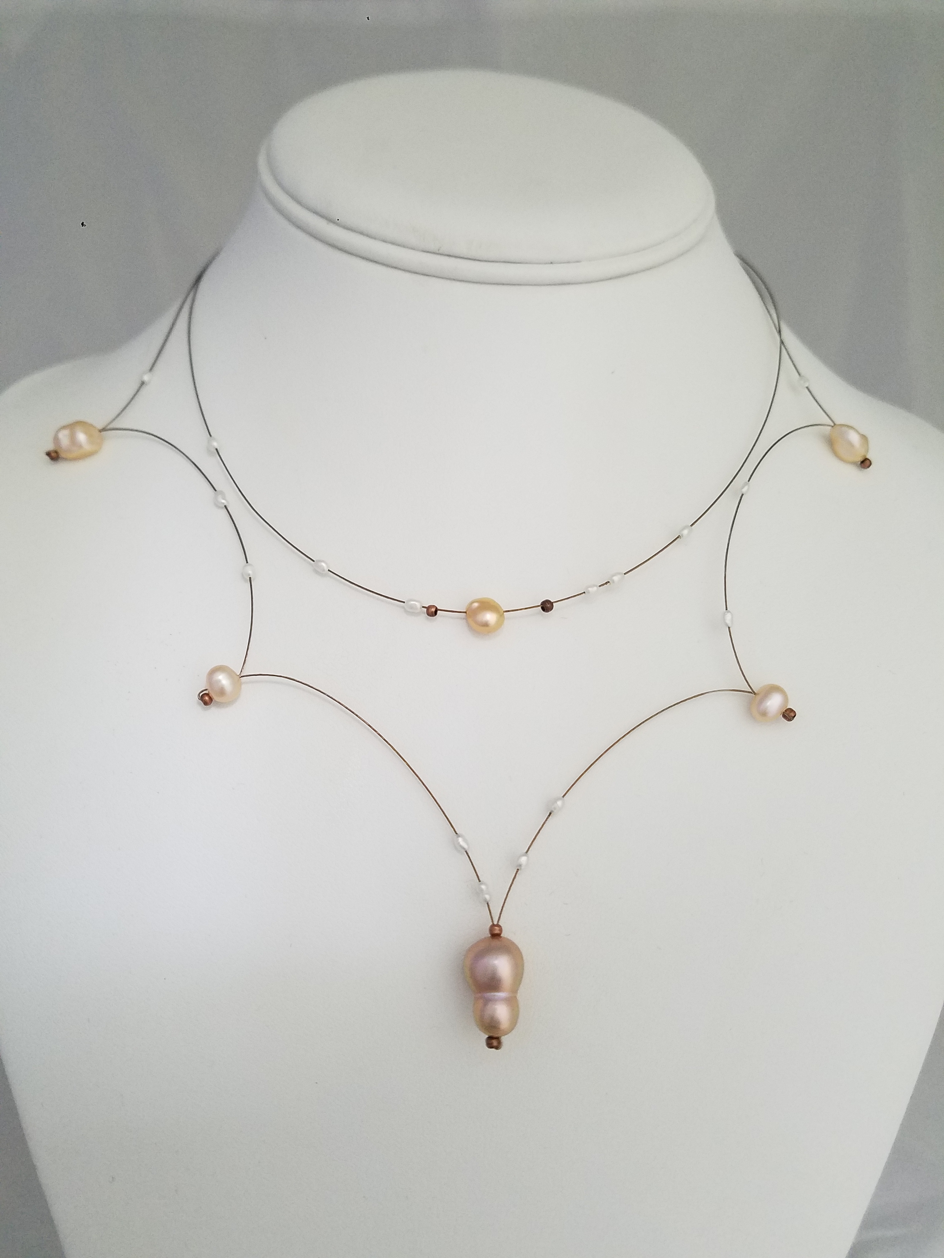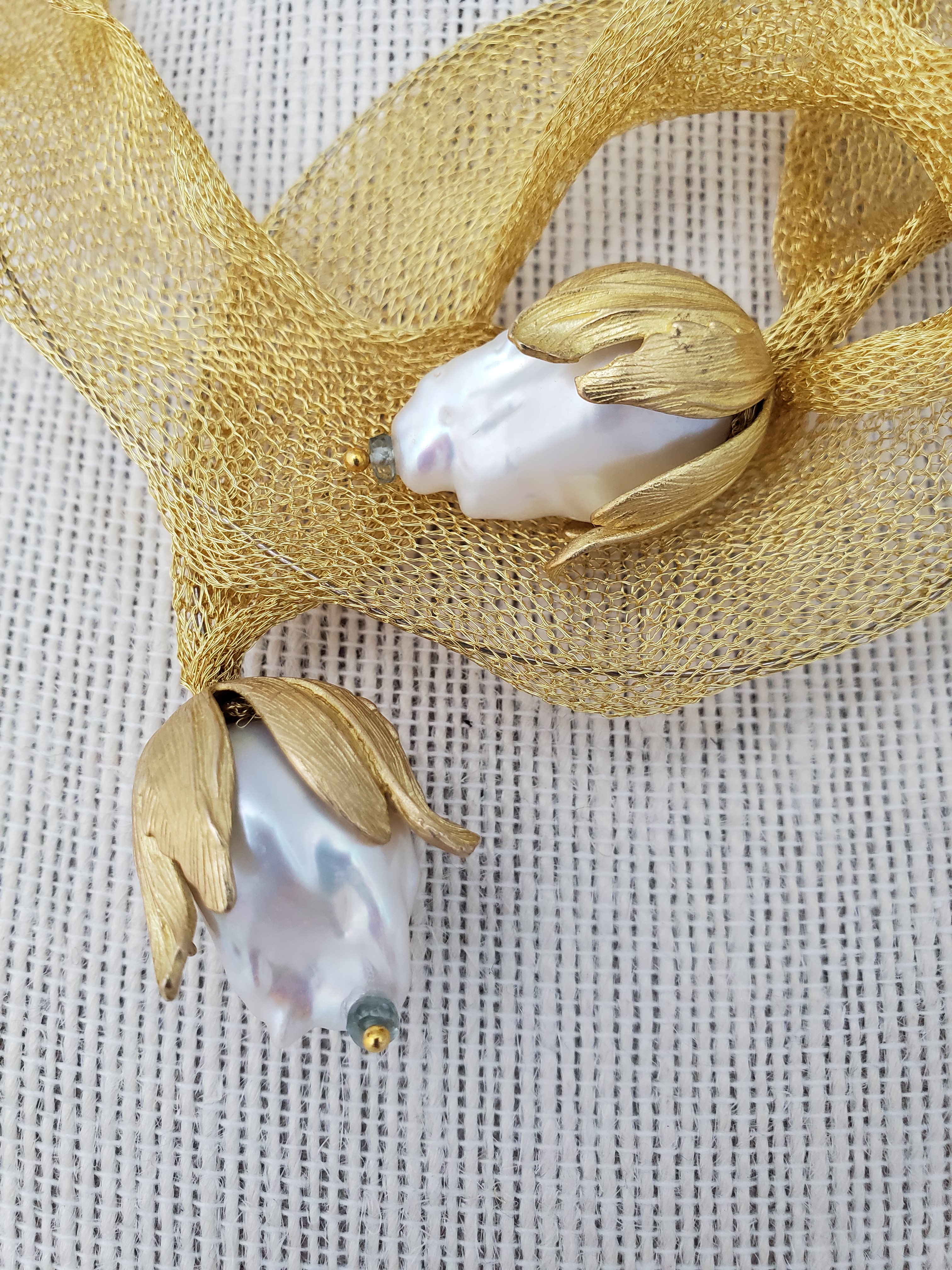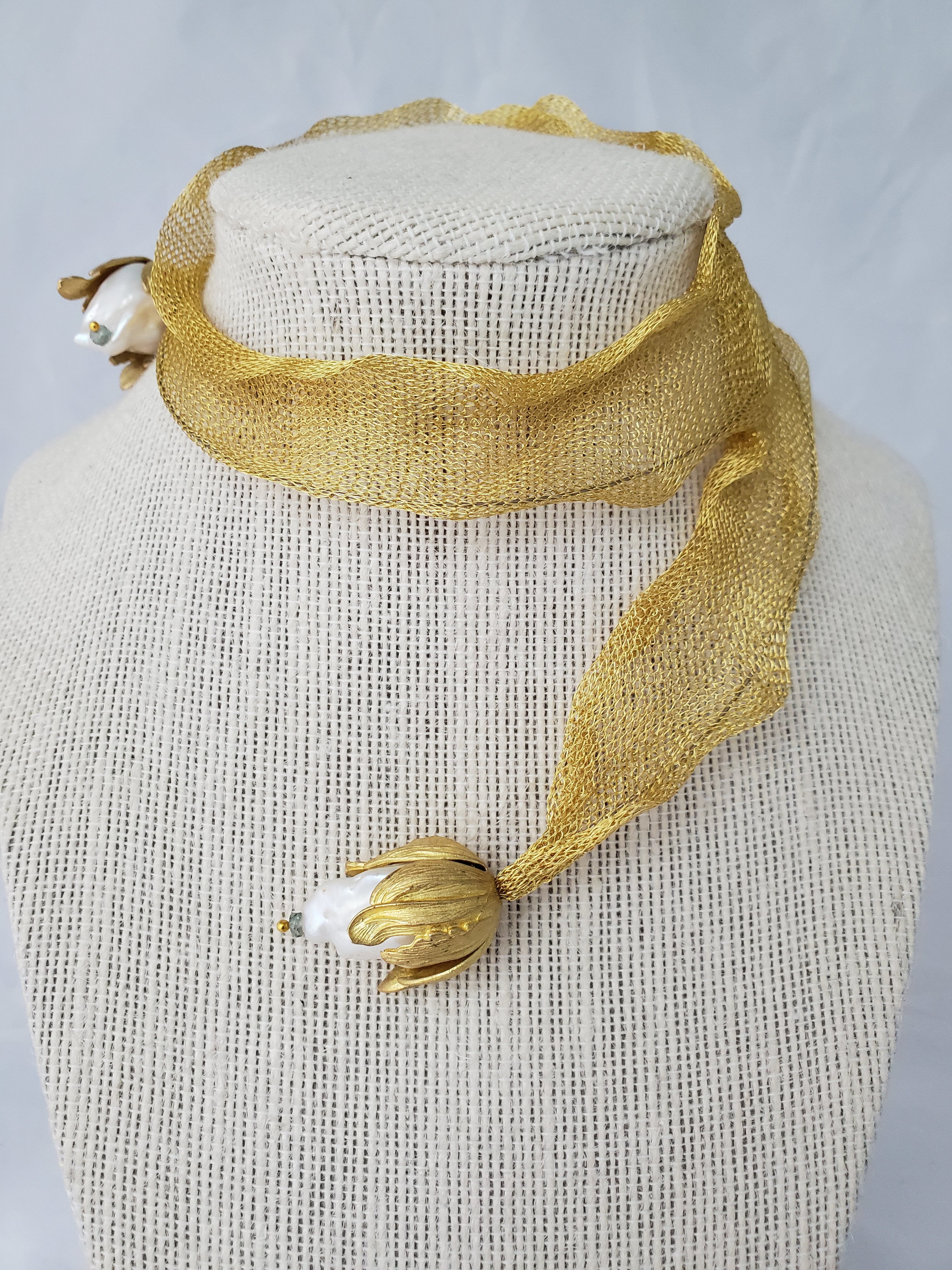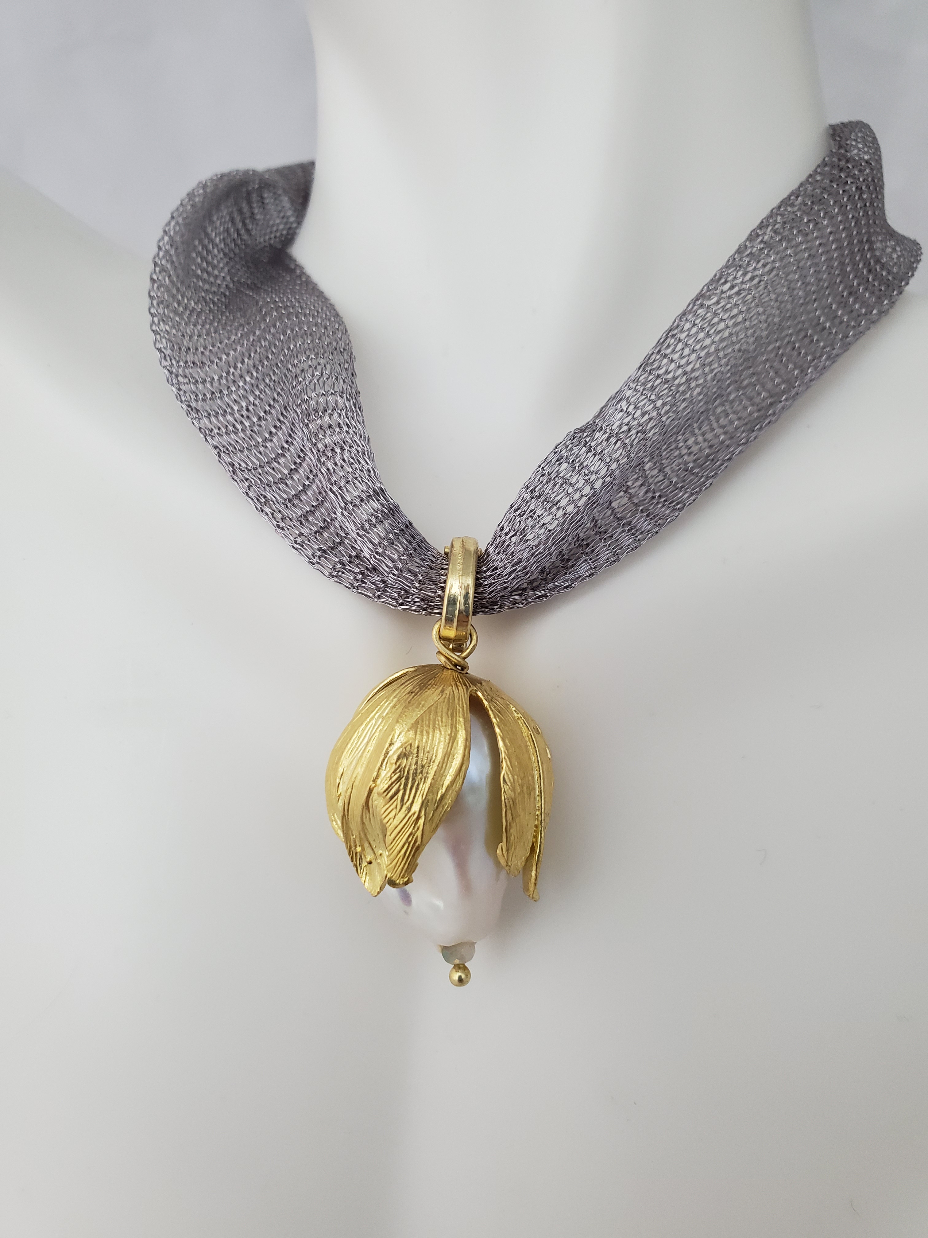 Titanium mesh and pearls necklace
