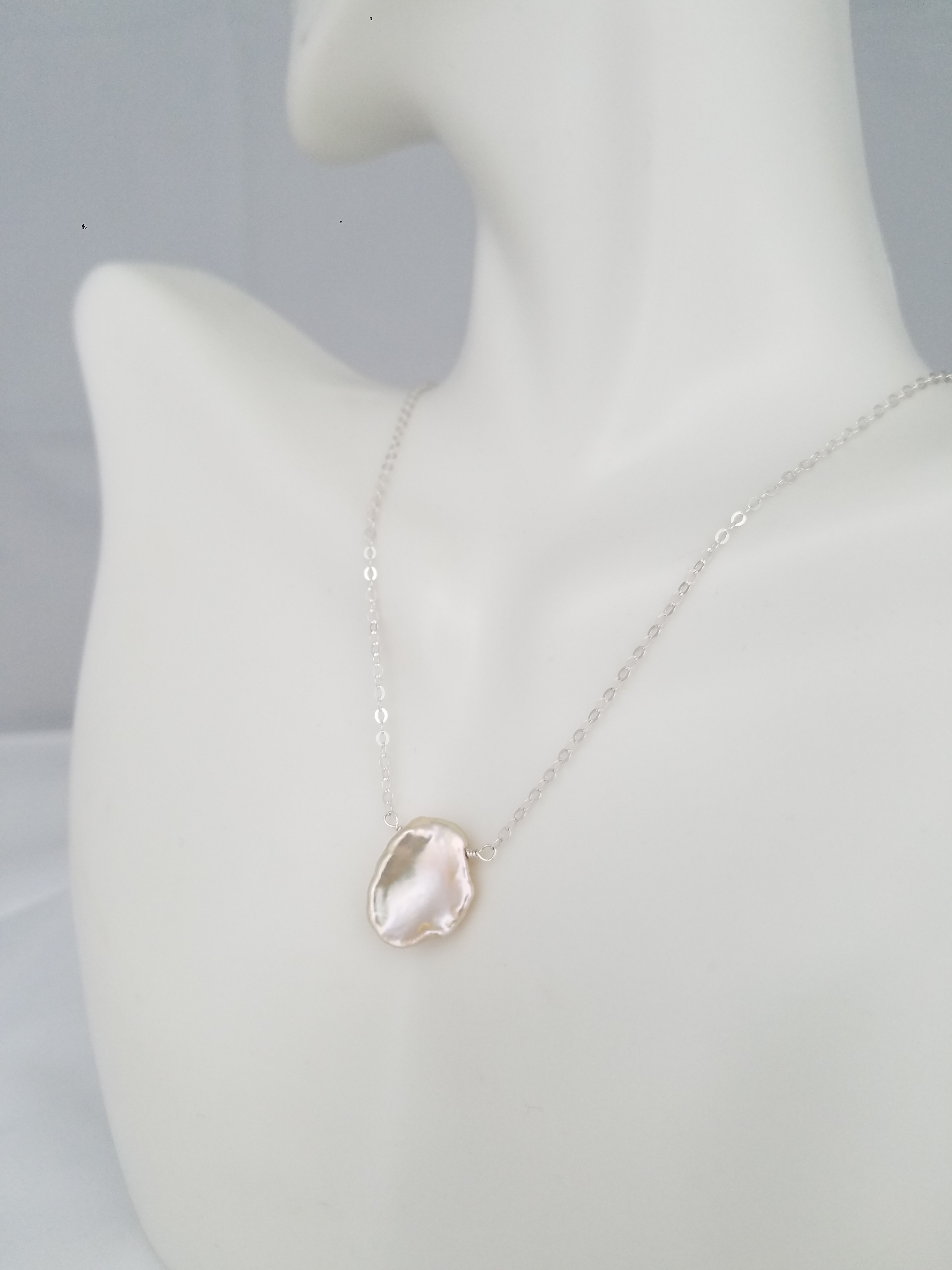 White AA+ pearl on a sterling silver chain