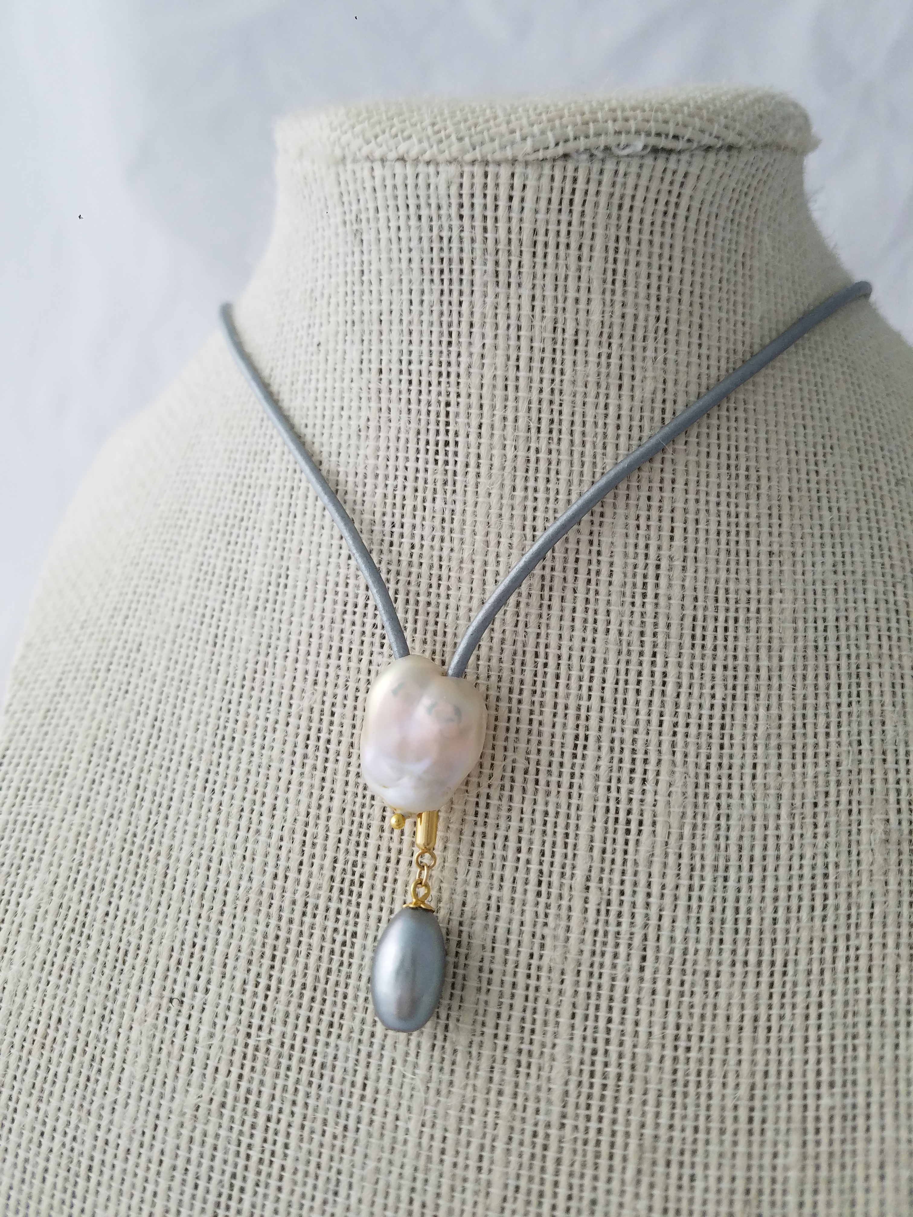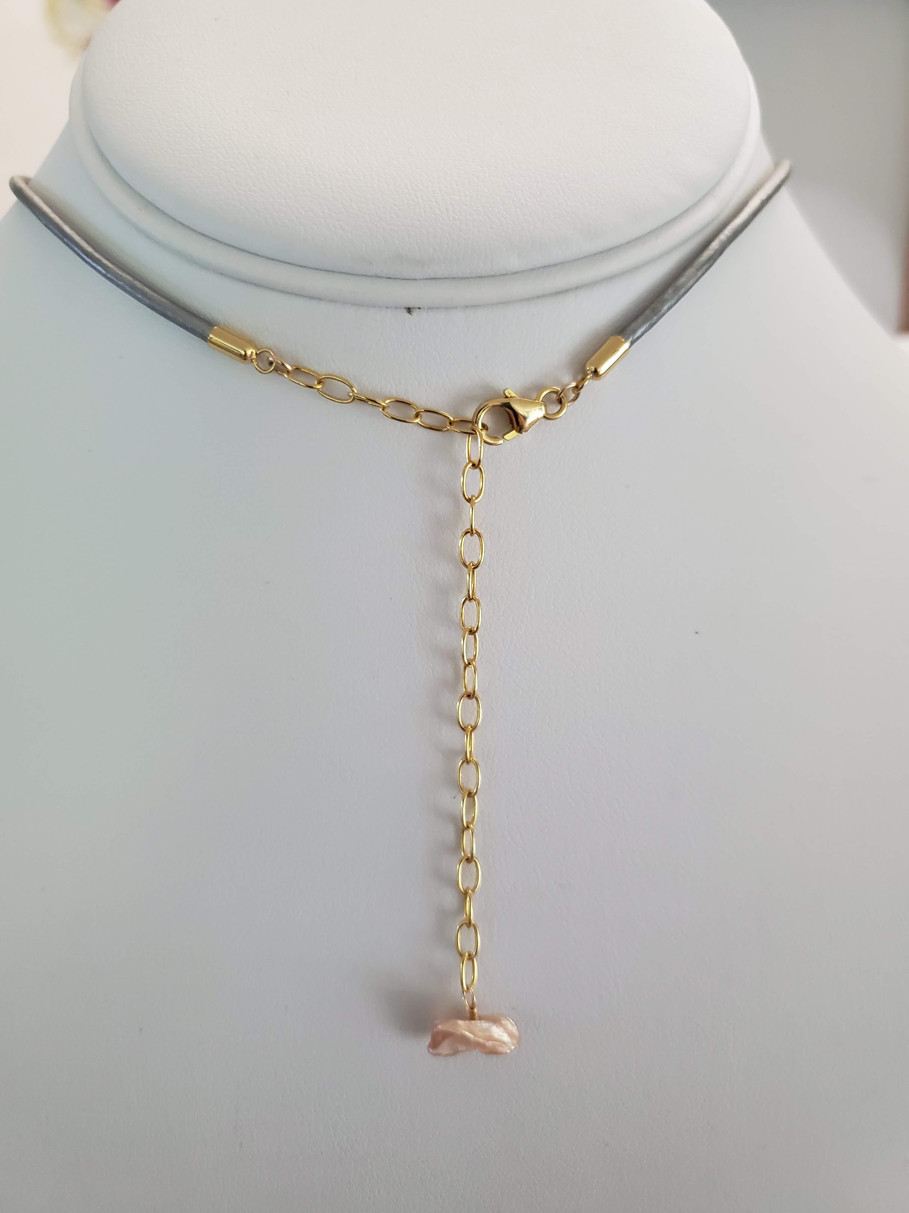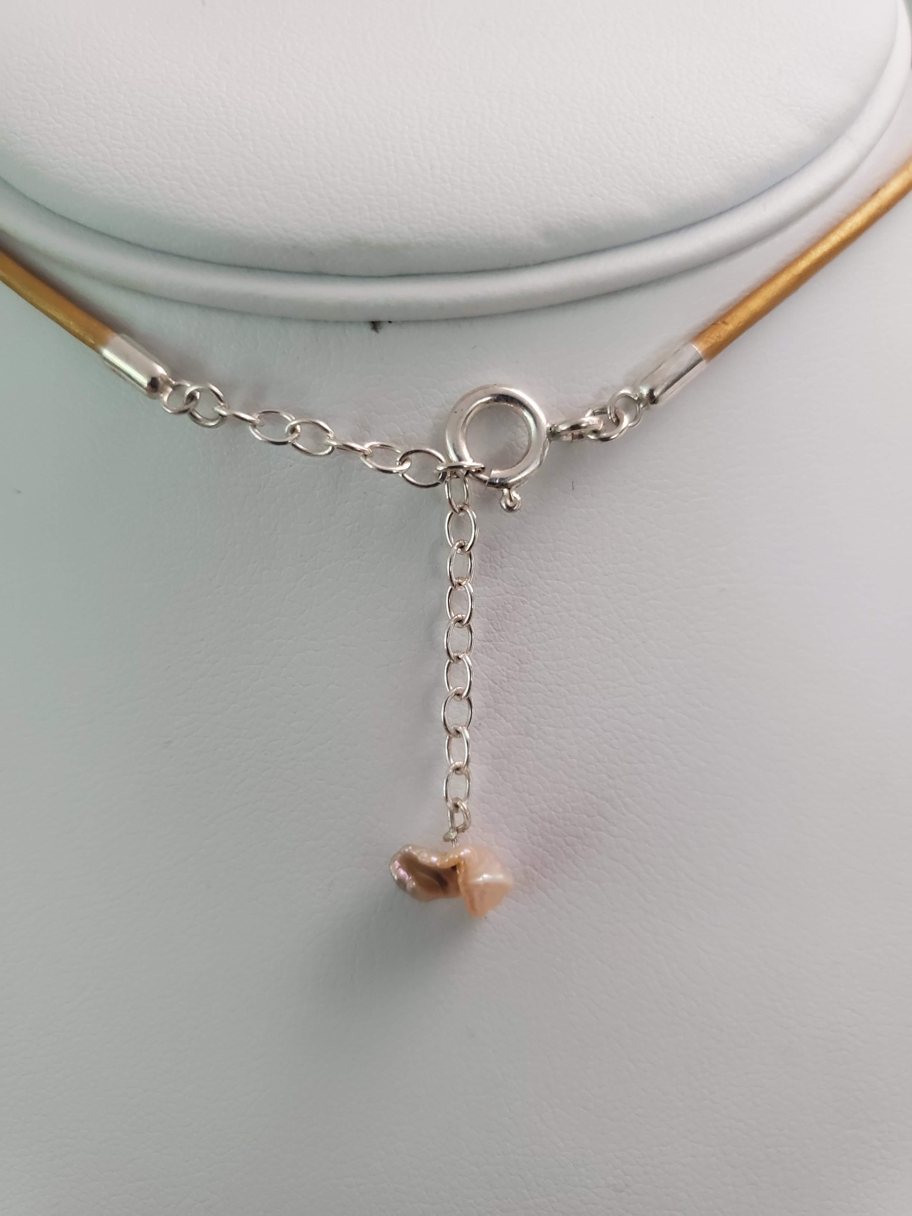 Adjustable leather chocker with 2 pearlsp and Sterling Silver Gold Plated components