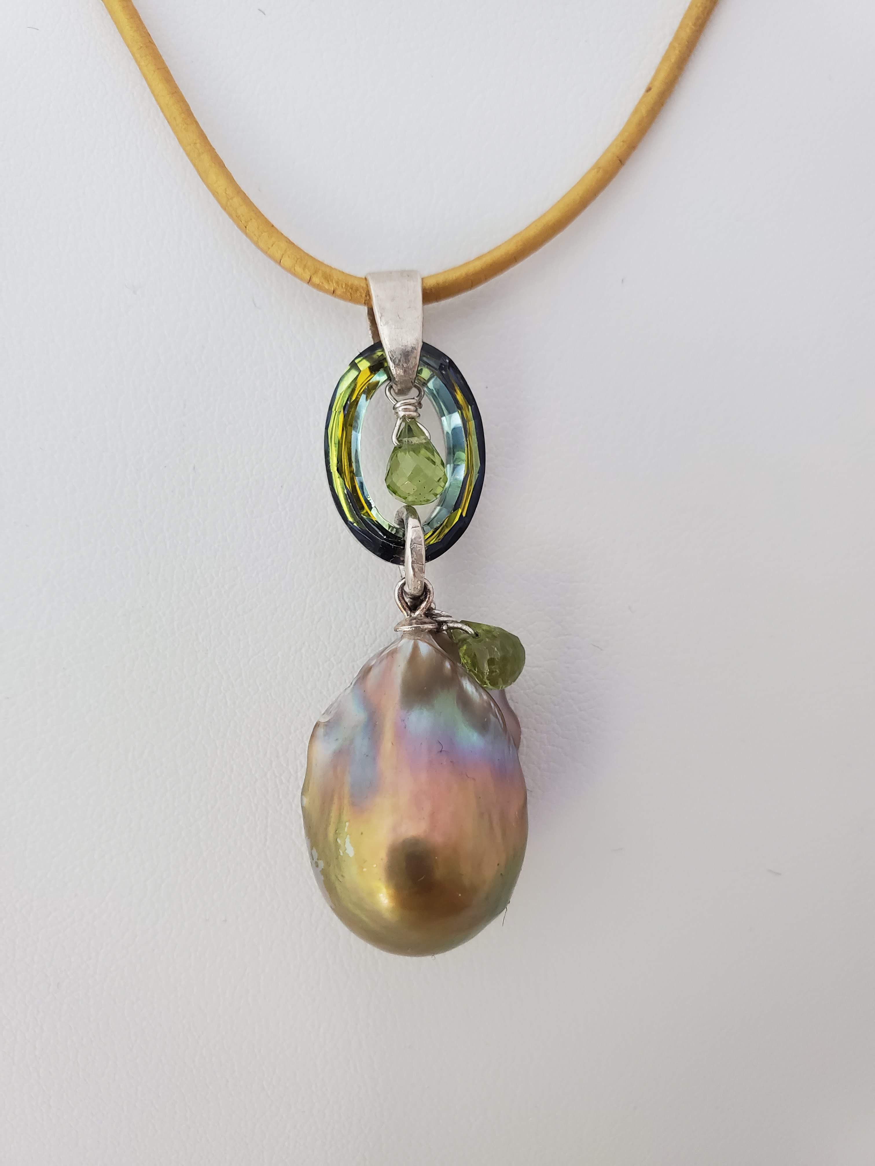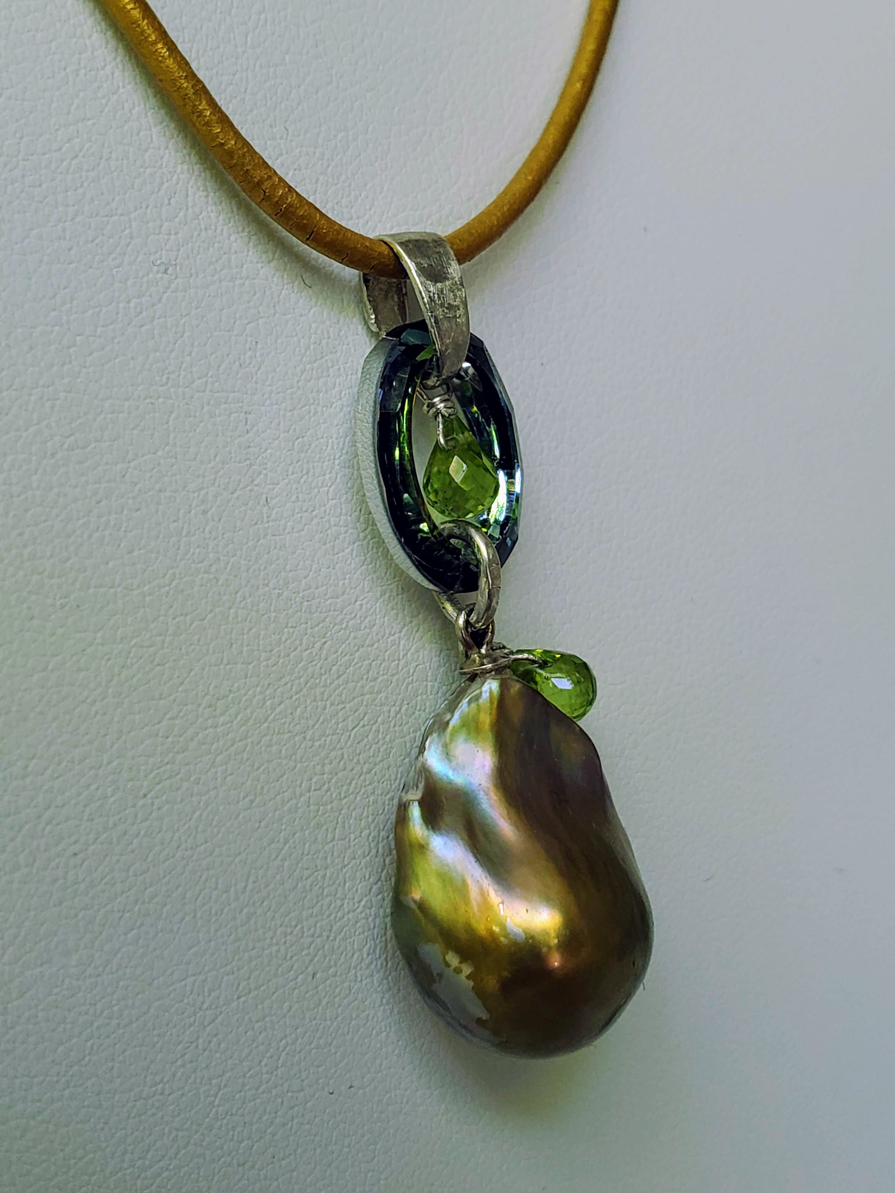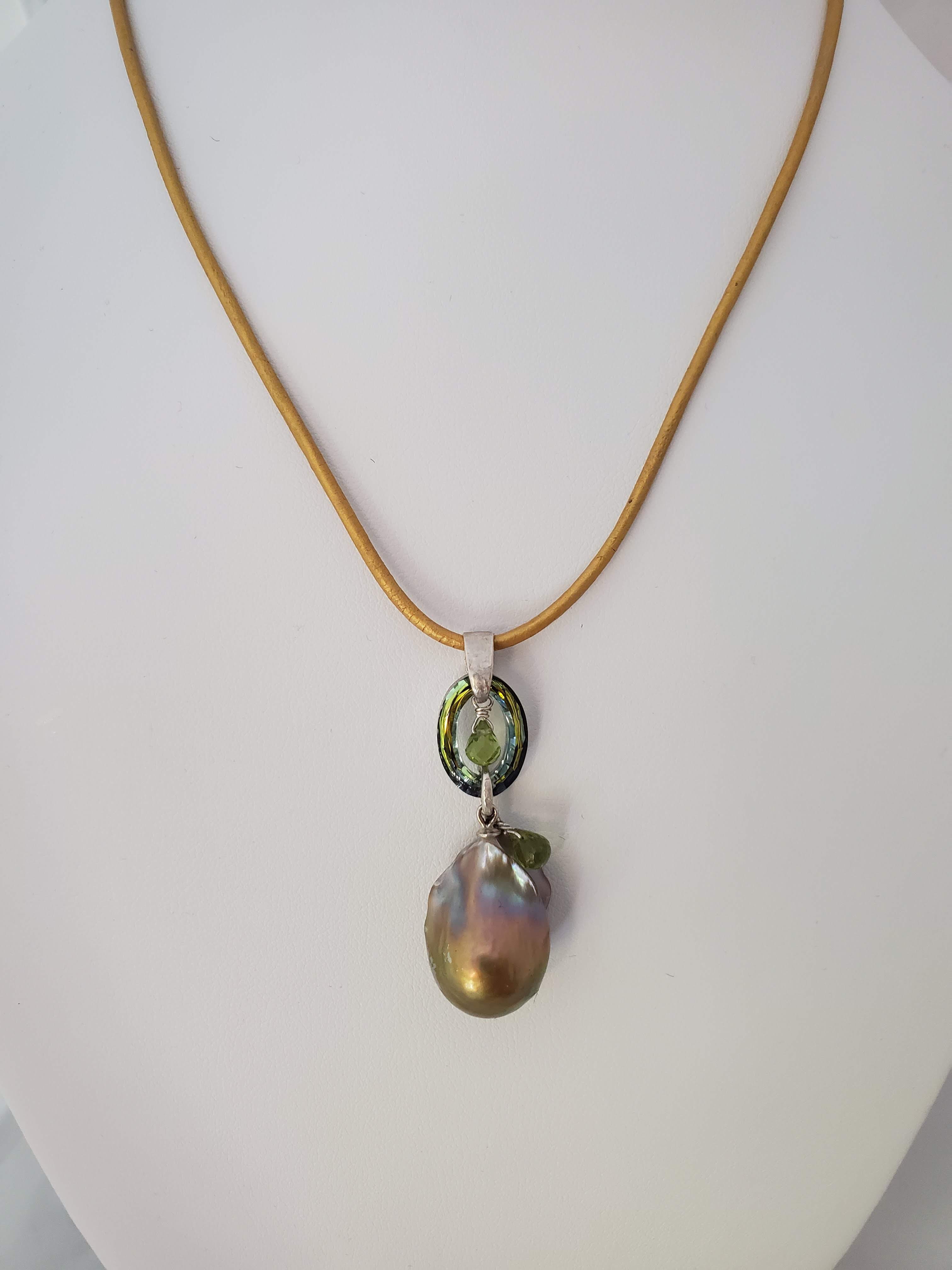 Rainbow flameball, peridots, zwarovsky, leather, sterling silver
