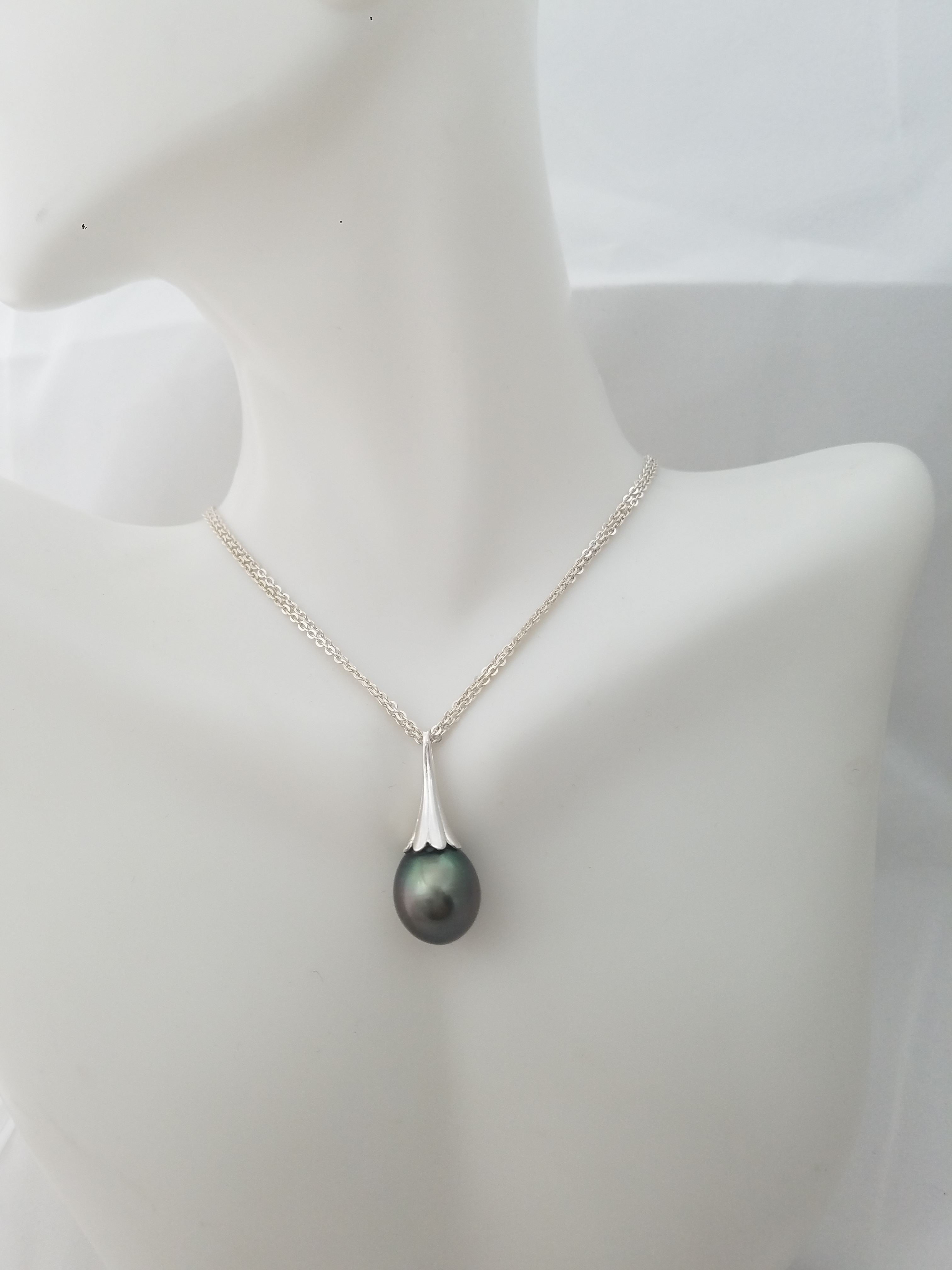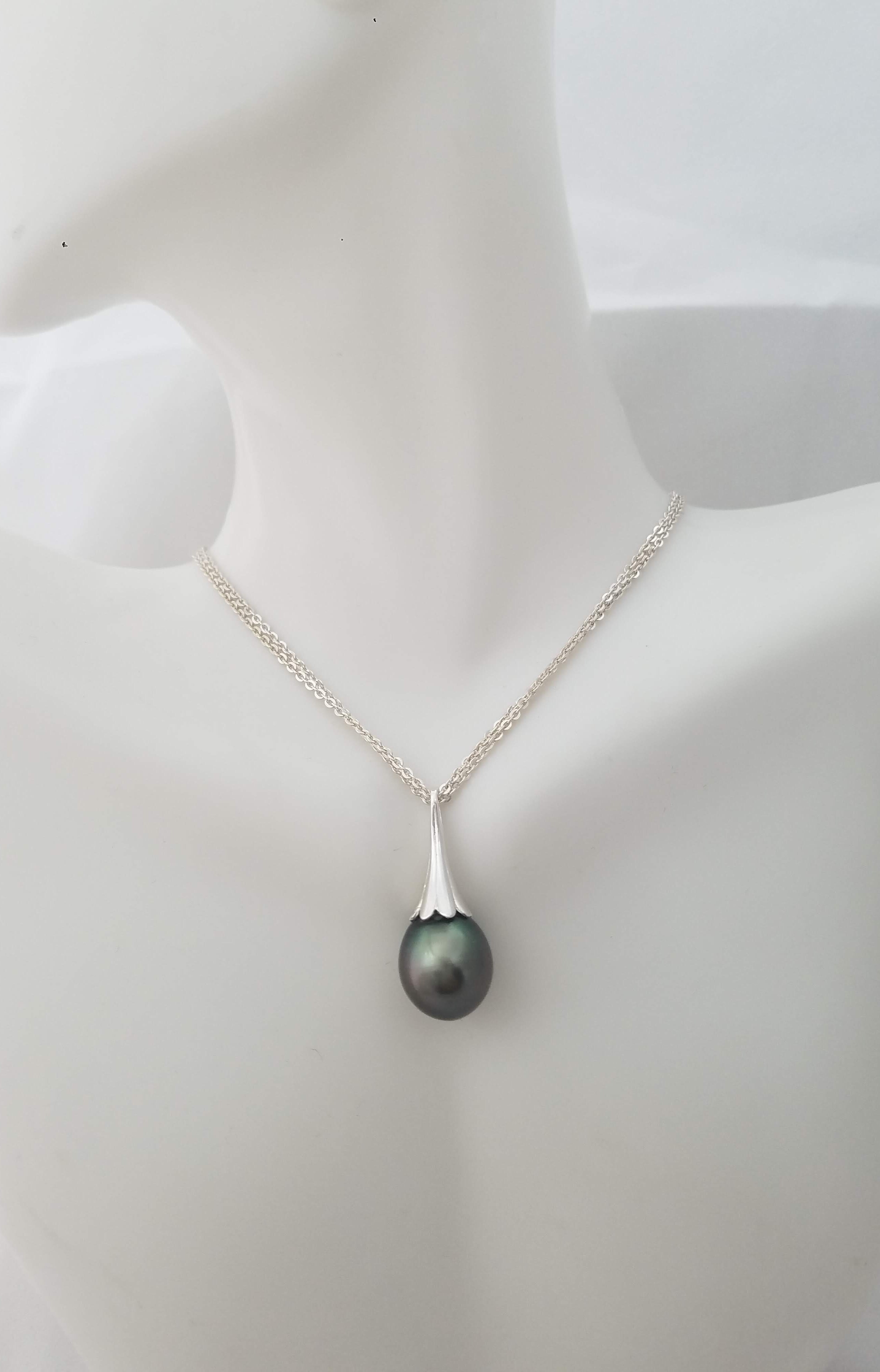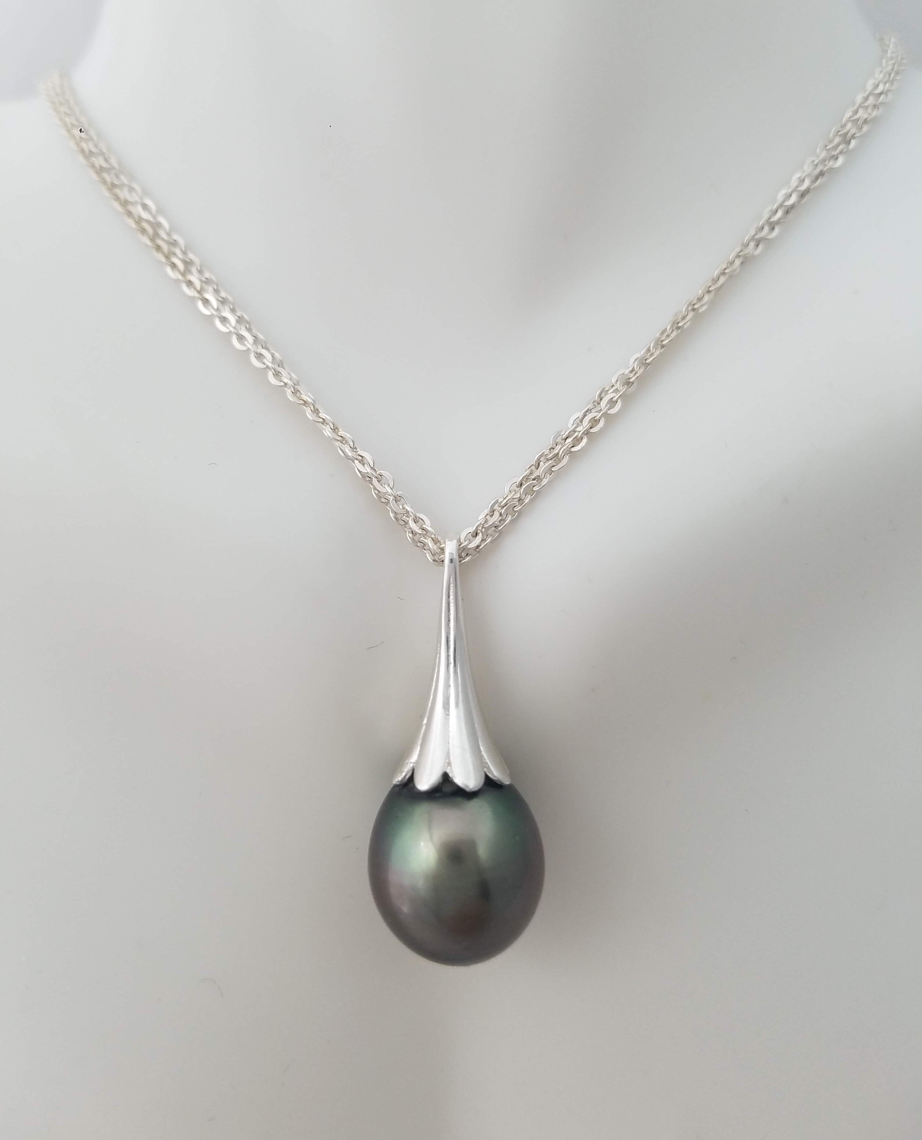 Oval Tahitian pearl on Sterling Silver flower bail