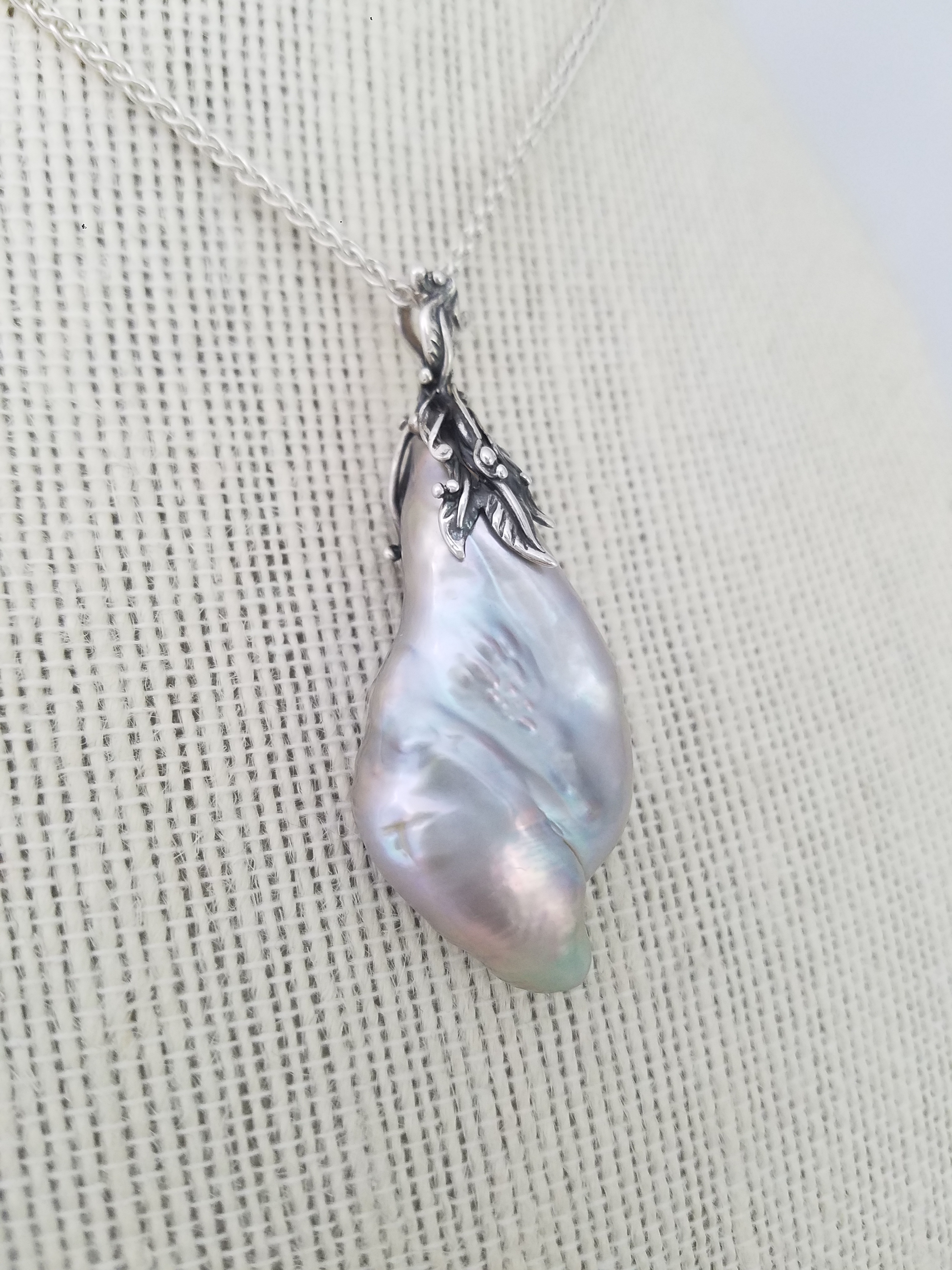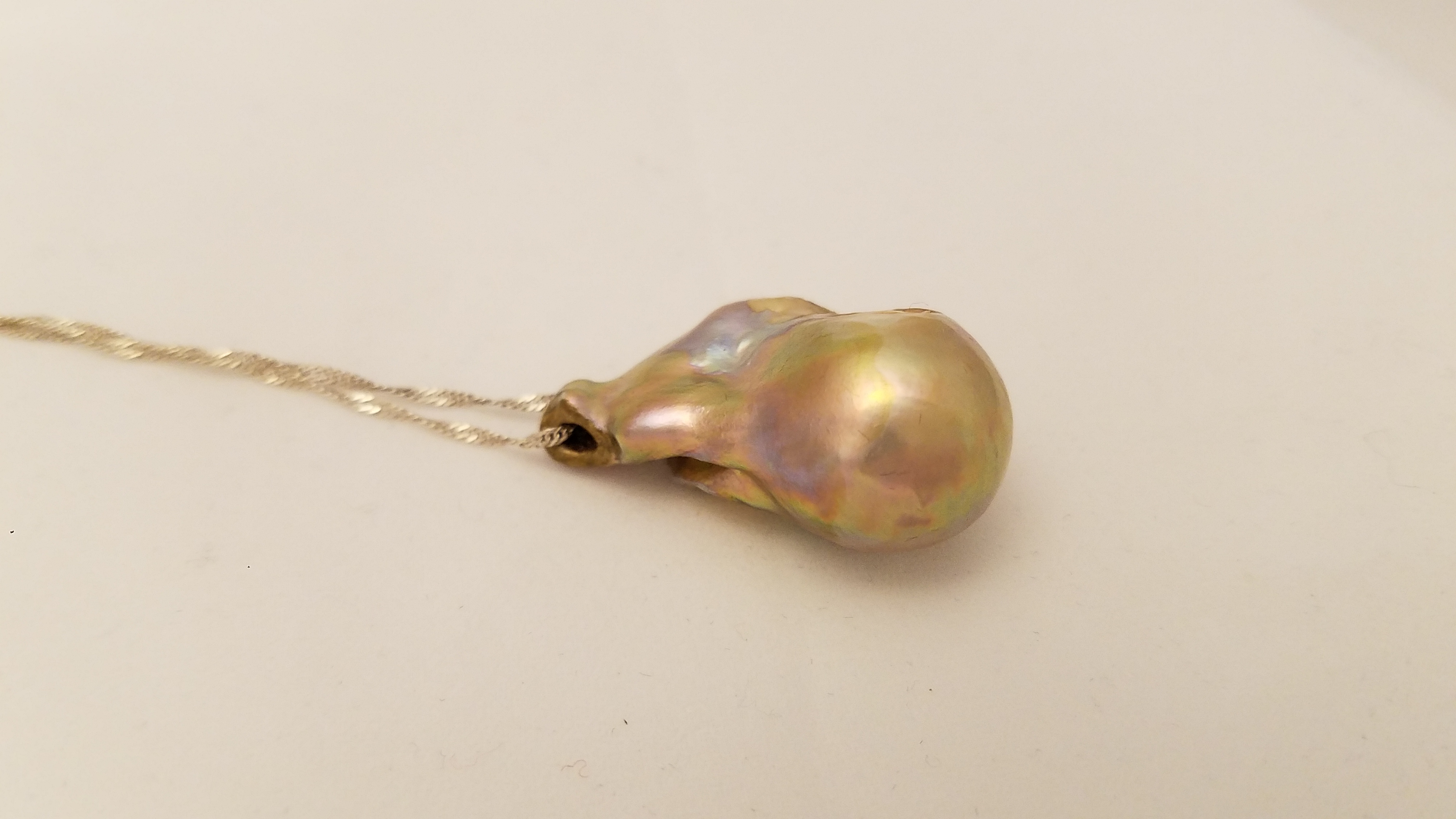 Huge grey/gold pearl on filigree Sterling Silver bail Optional accessory: SS 1.5mm rolo chain adjustable add $20