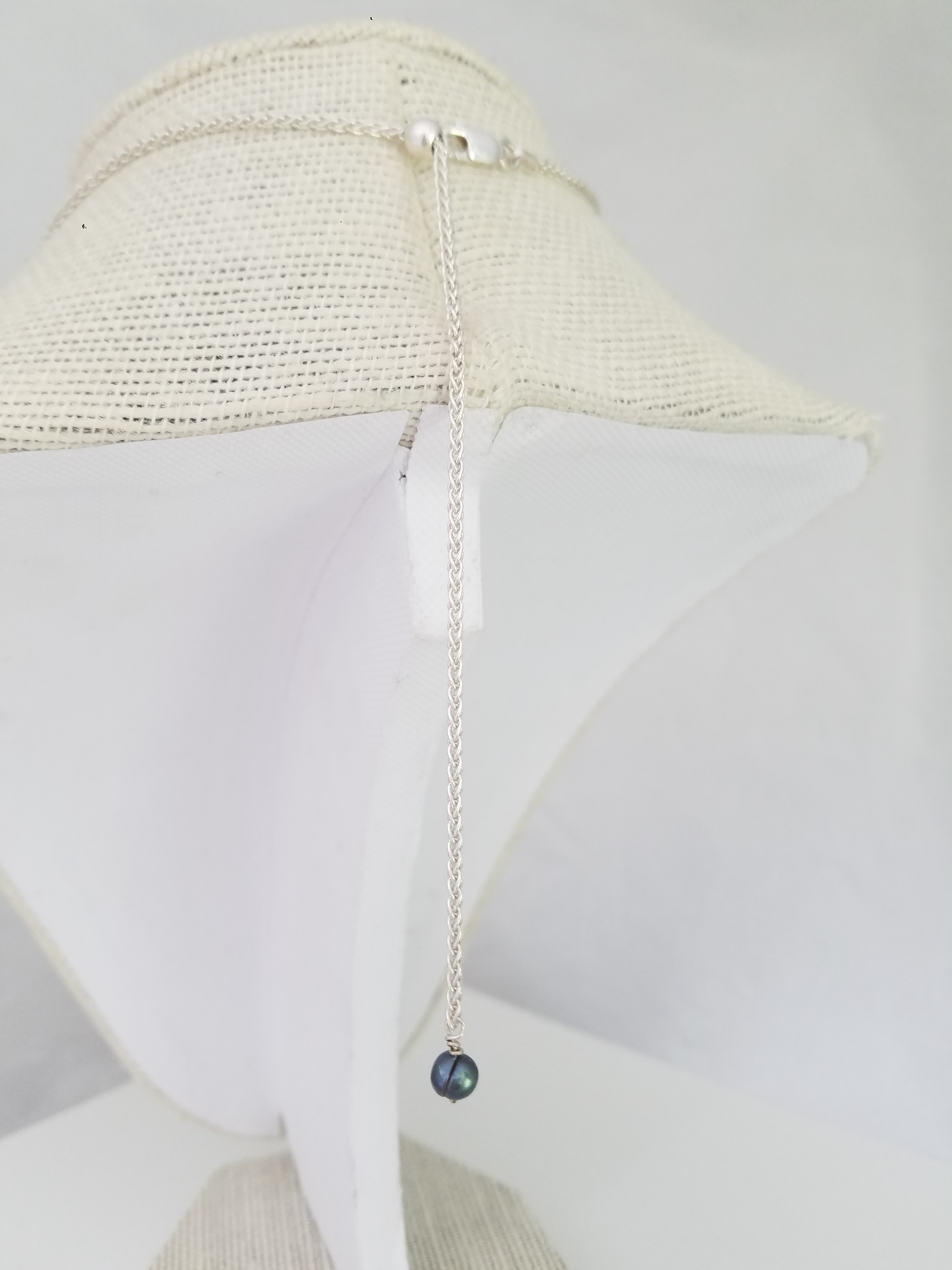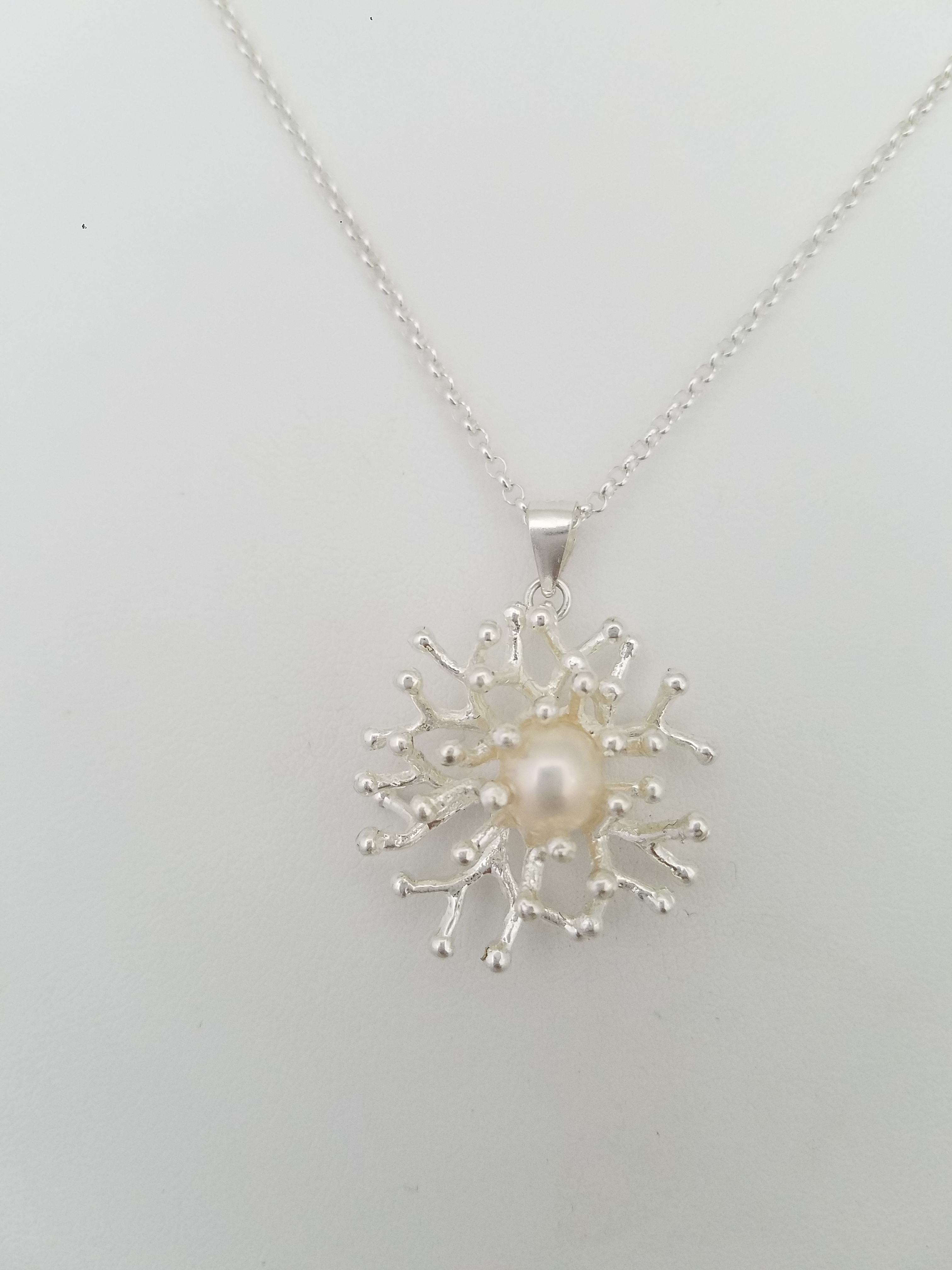 Sterling Silver plated pendant on Sterling Silver bail, white pearl. Sterling silver box chain is included