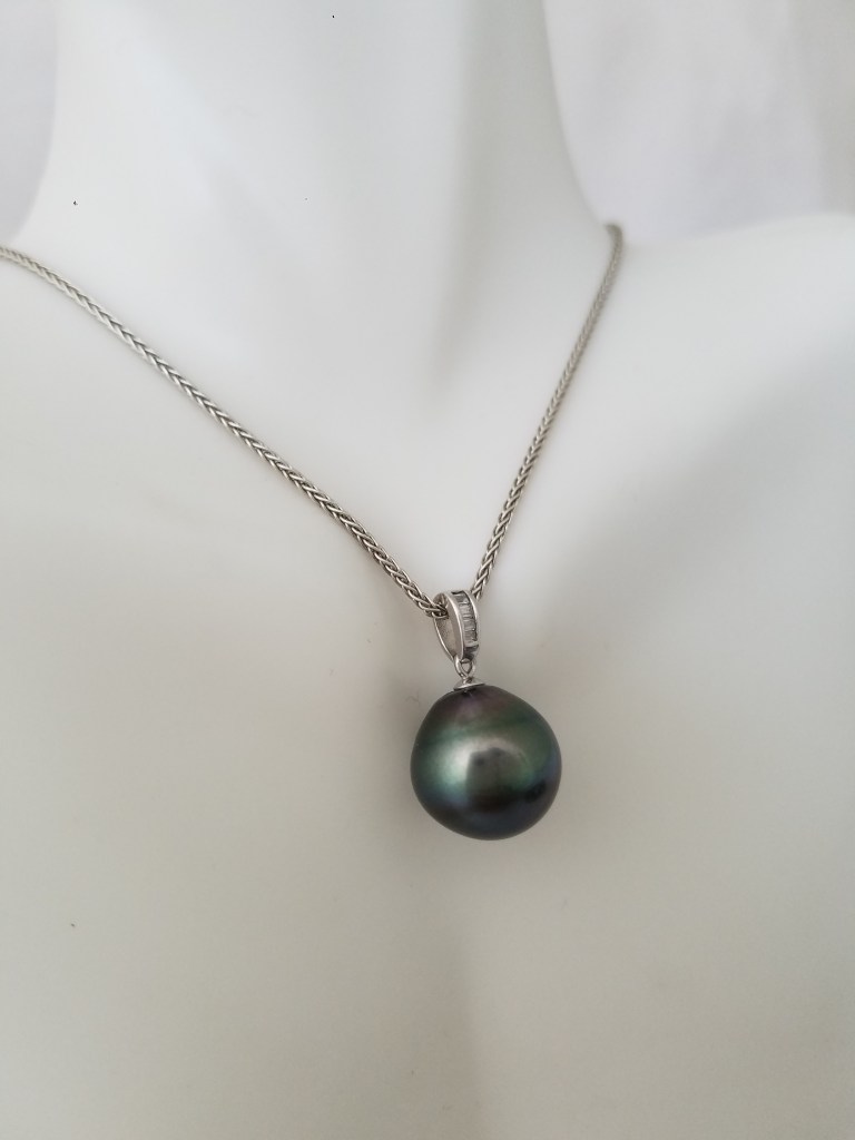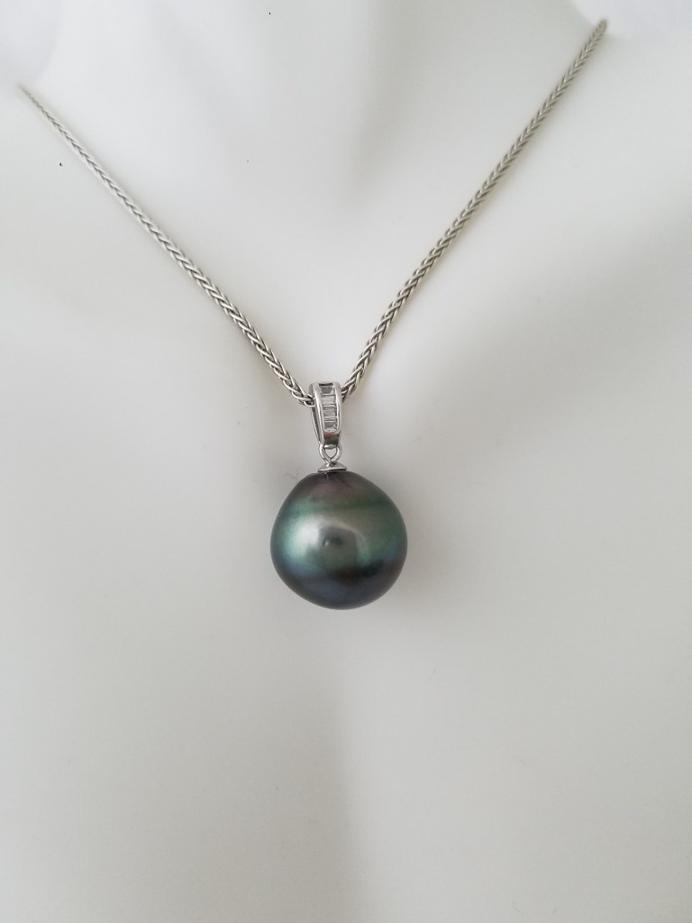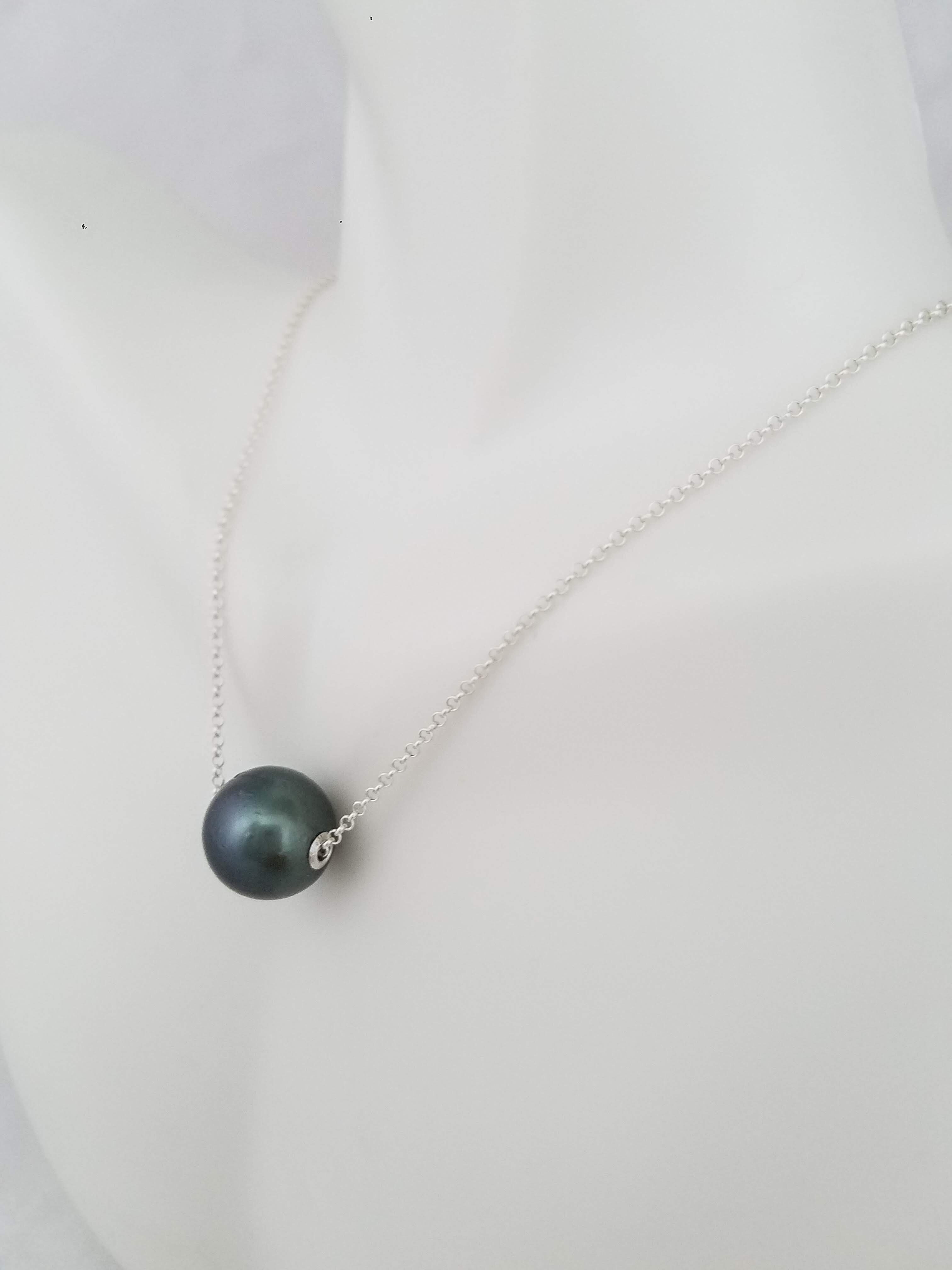 Round blue Tahitian pearl on a Rolo chain