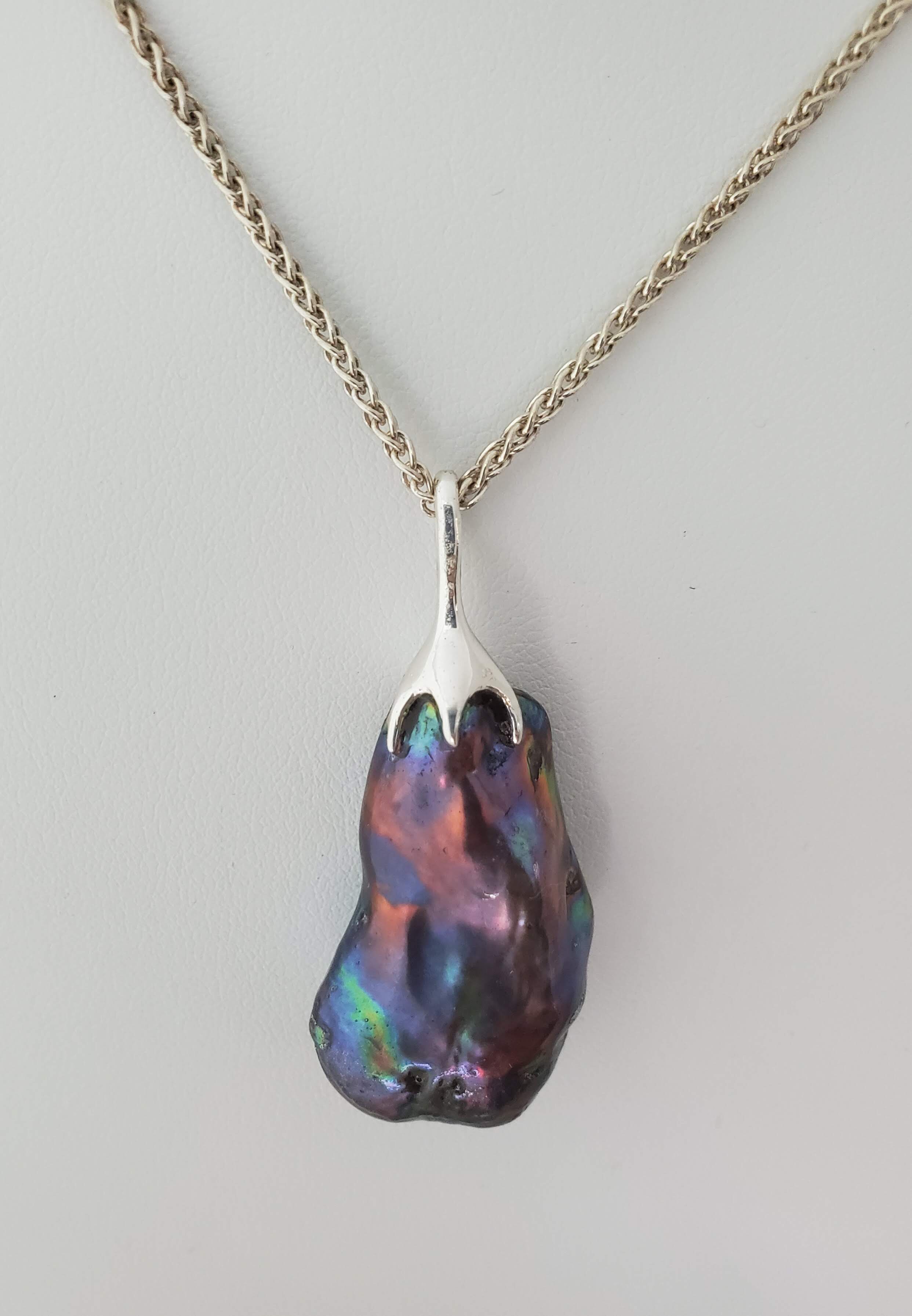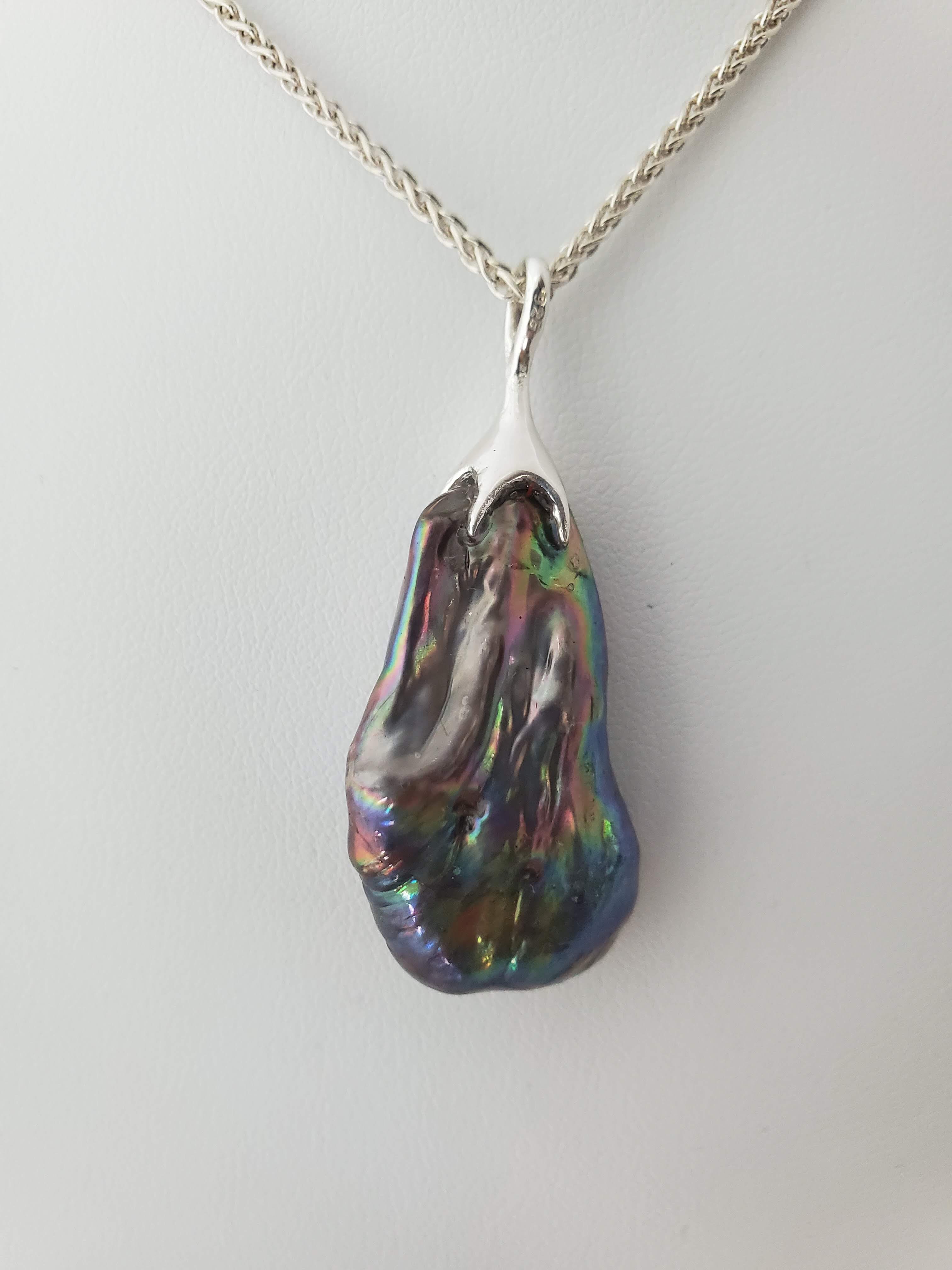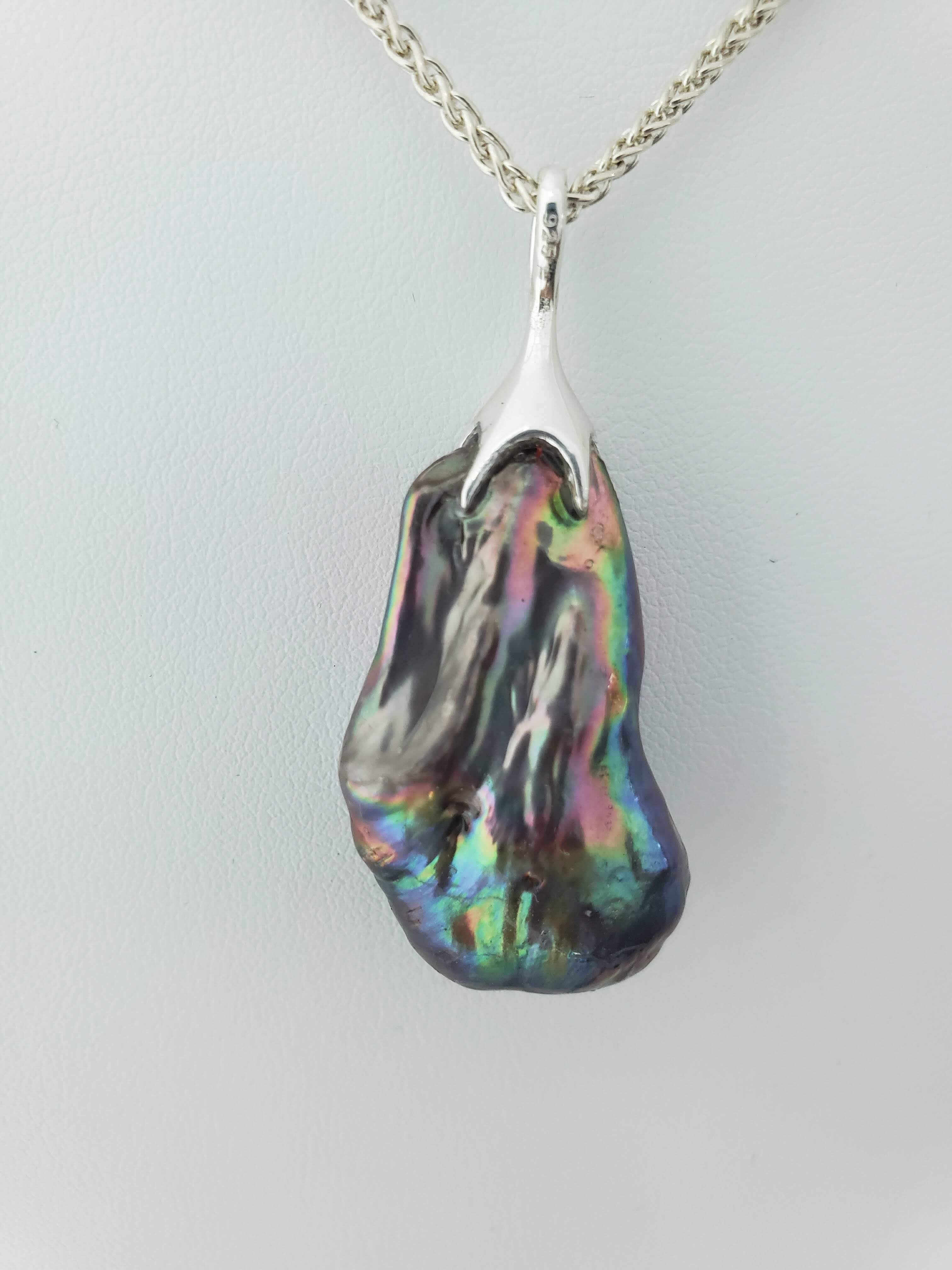 Grey Baroque pearl and filigree Pendant